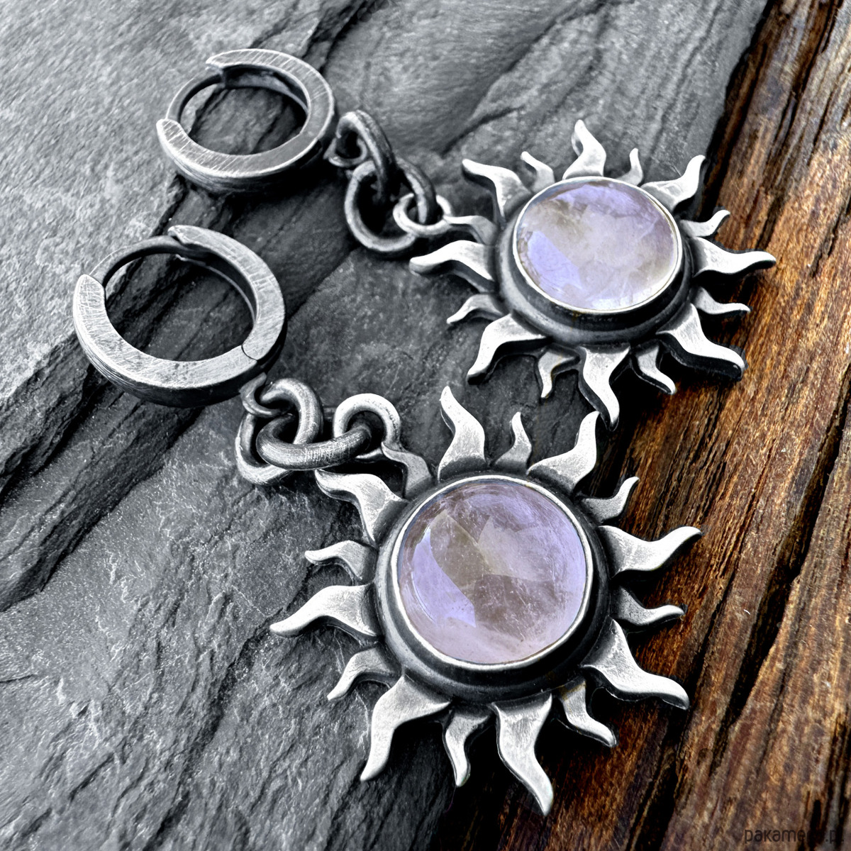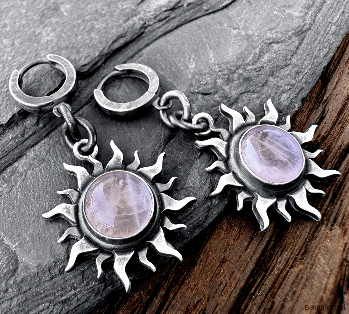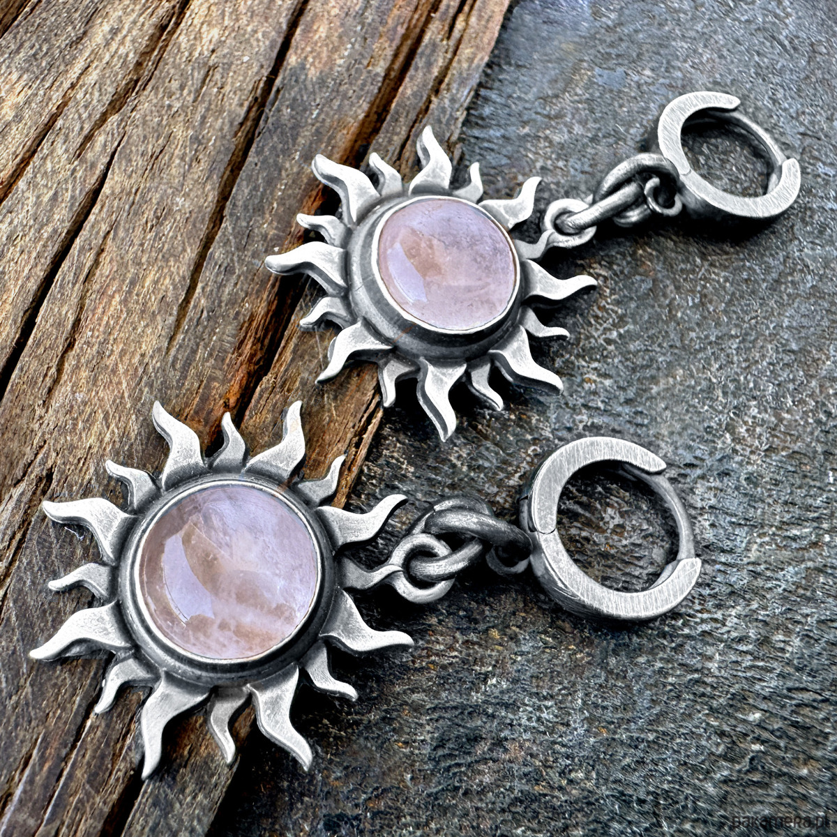 Srebrne kolczyki symbol Słońca z kwarcem różowym 10 mm
