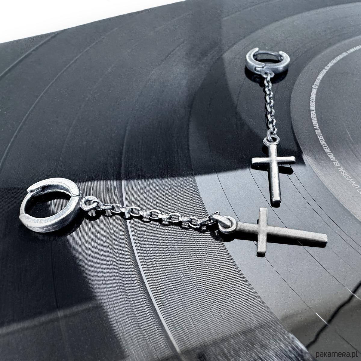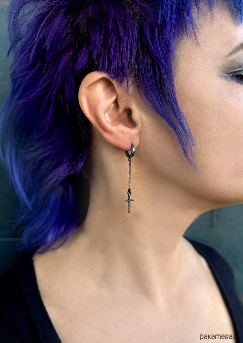 Autorskie kolczyki wiszące, wykonane z oksydowanego srebra próby 925. Idealny dodatek do rockowych stylizacji.