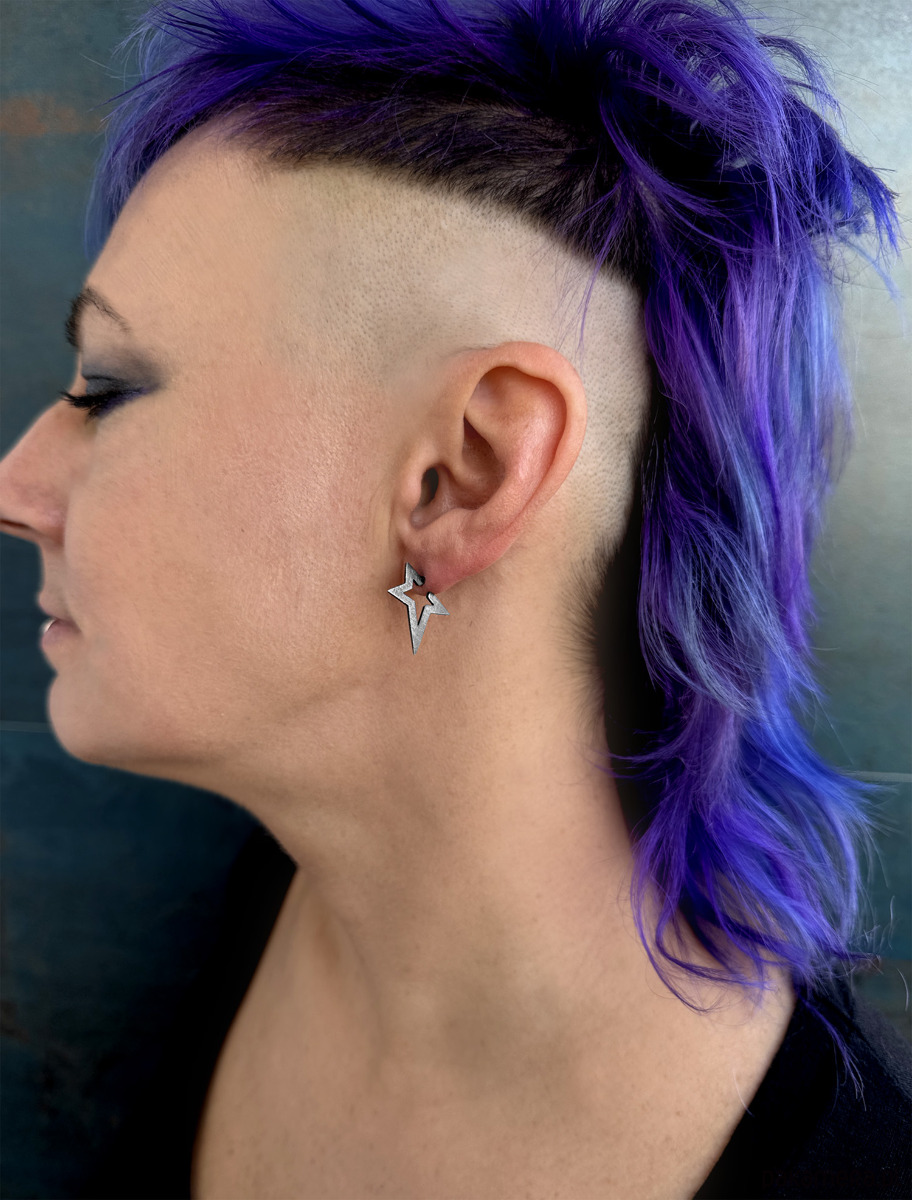 Srebrne kolczyki wkrętki Gwiazdki Rockstar dark, wersja mniejsza