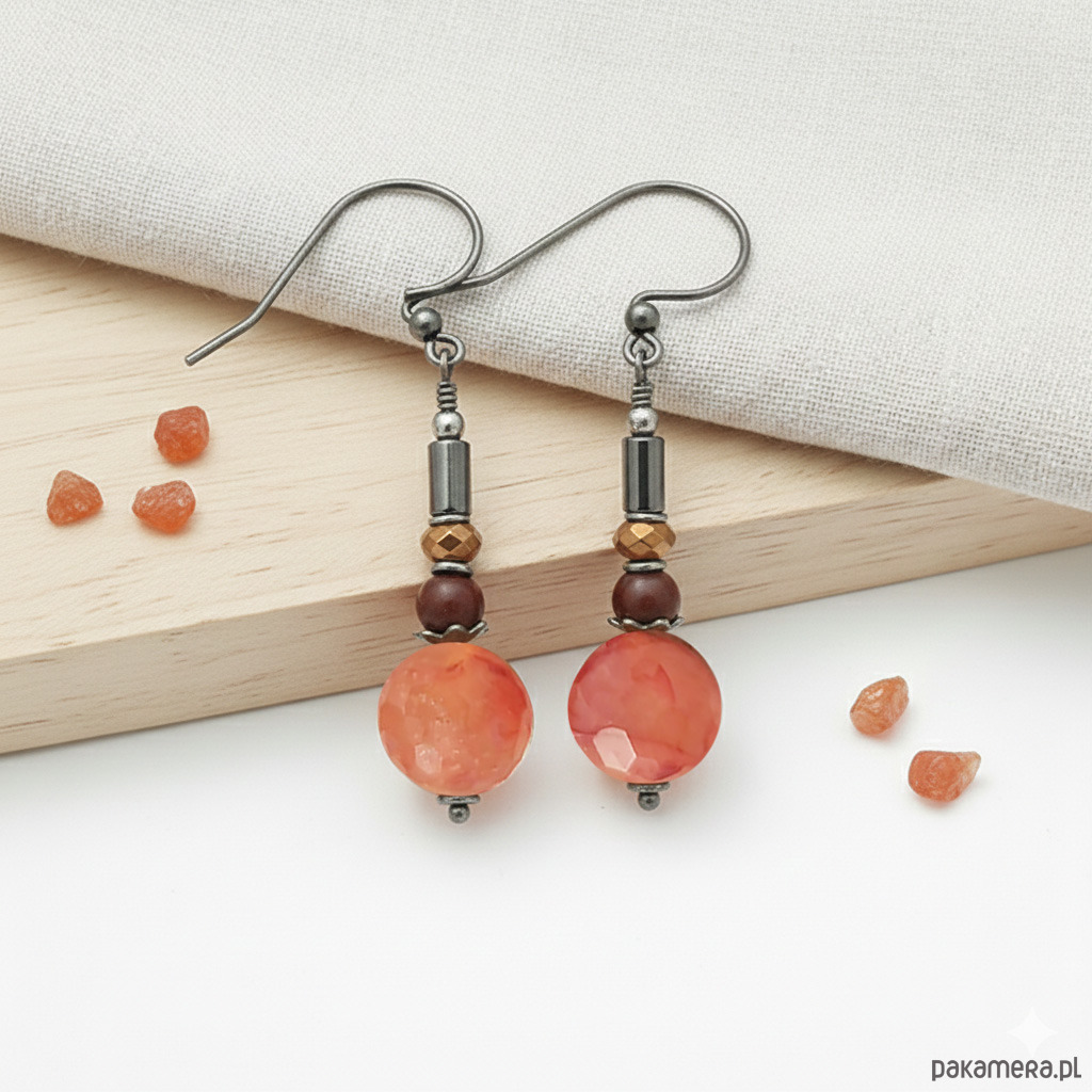 Naturalne minerały: Połączenie agatu (10 mm), mokaitu (4 mm) oraz hematytu tworzy harmonijną paletę kolorystyczną.