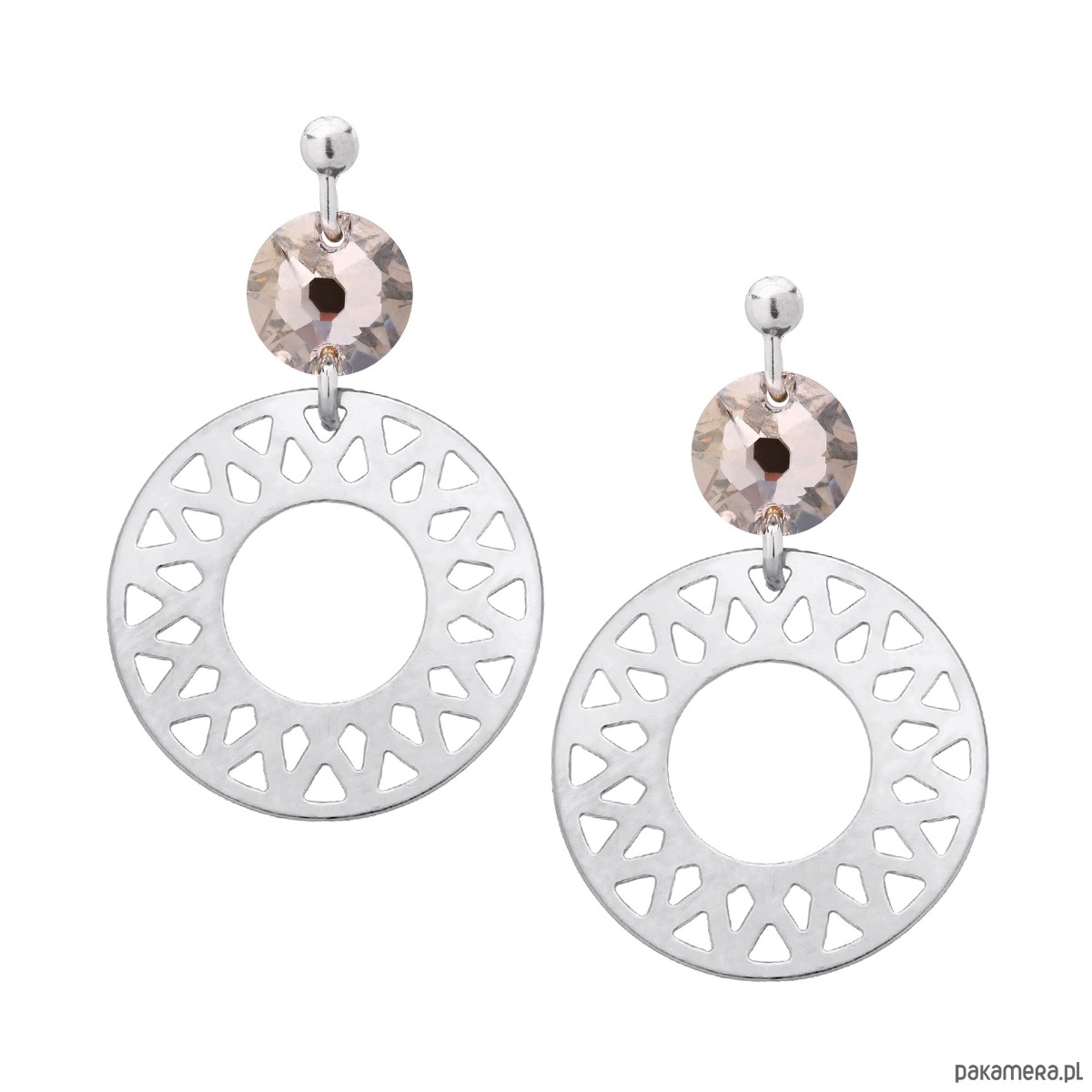 Srebrne kolczyki wykonane z okrągłych arabskich dużych rozet i cielistych kryształów SWAROVSKI® CRYSTAL w kolorze Light Silk. Całość wykonana ze srebra 925. Zapinane na sztyft.