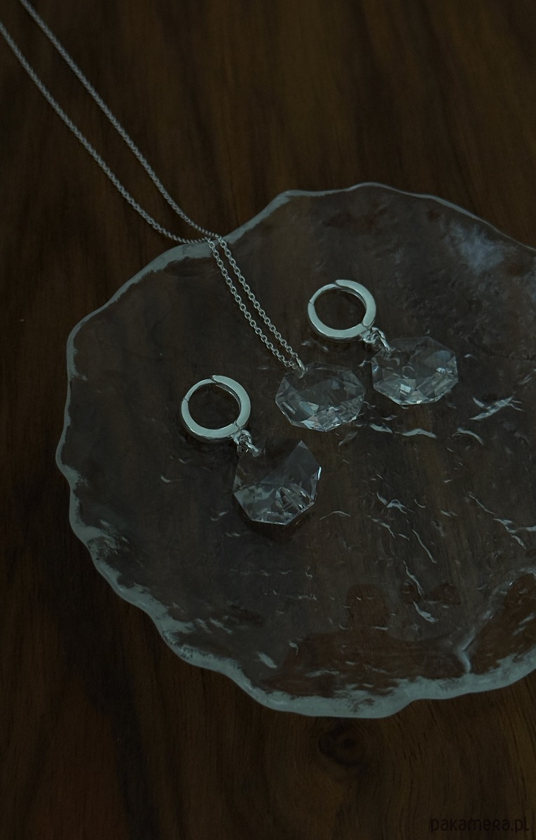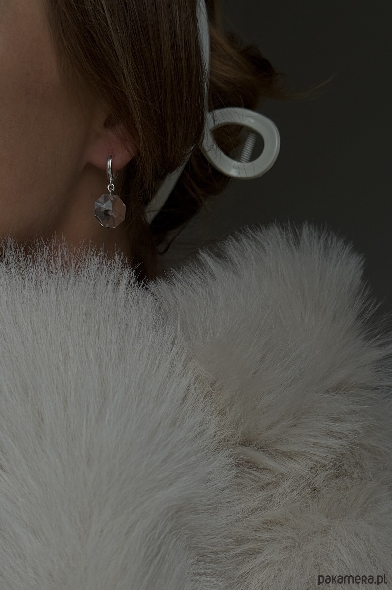 Srebrne kolczyki z bezbarwnymi kryształami Octagon SWAROVSKI® CRYSTAL. Całość wykonana ze srebra 925. Zapinane na sztyft. Kolczyki posiadają zapięcia (baranki).