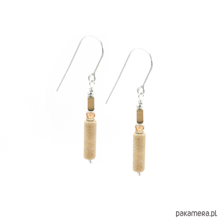 Subtelne kolczyki z mixem kamieni naturalnych w odcieniach beżu. Wygodne bigle haczyki.