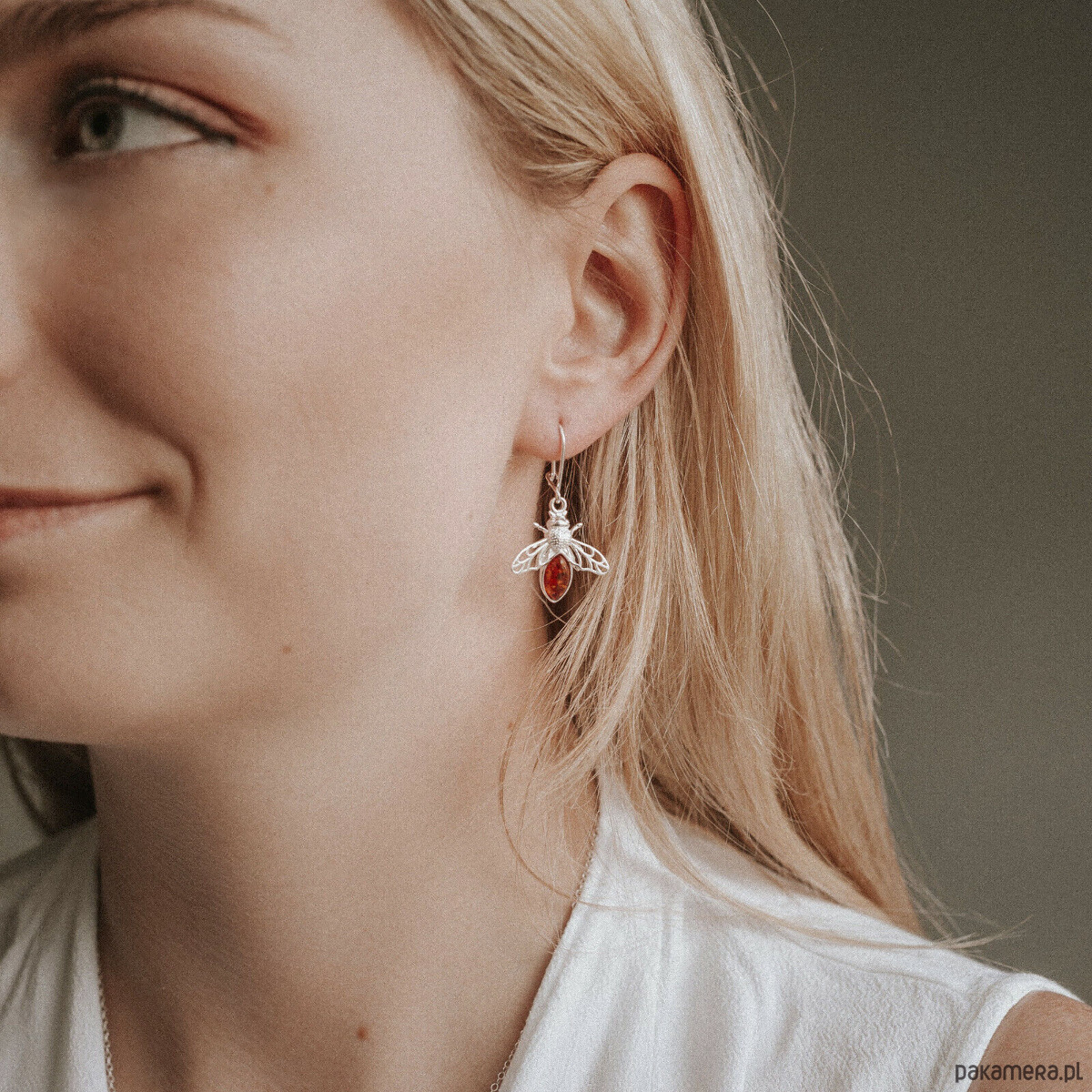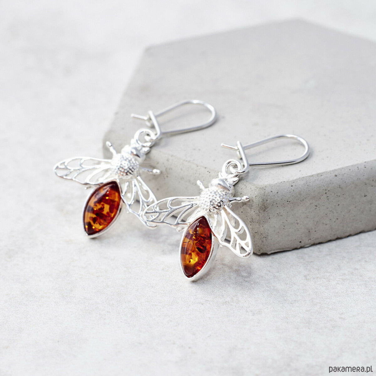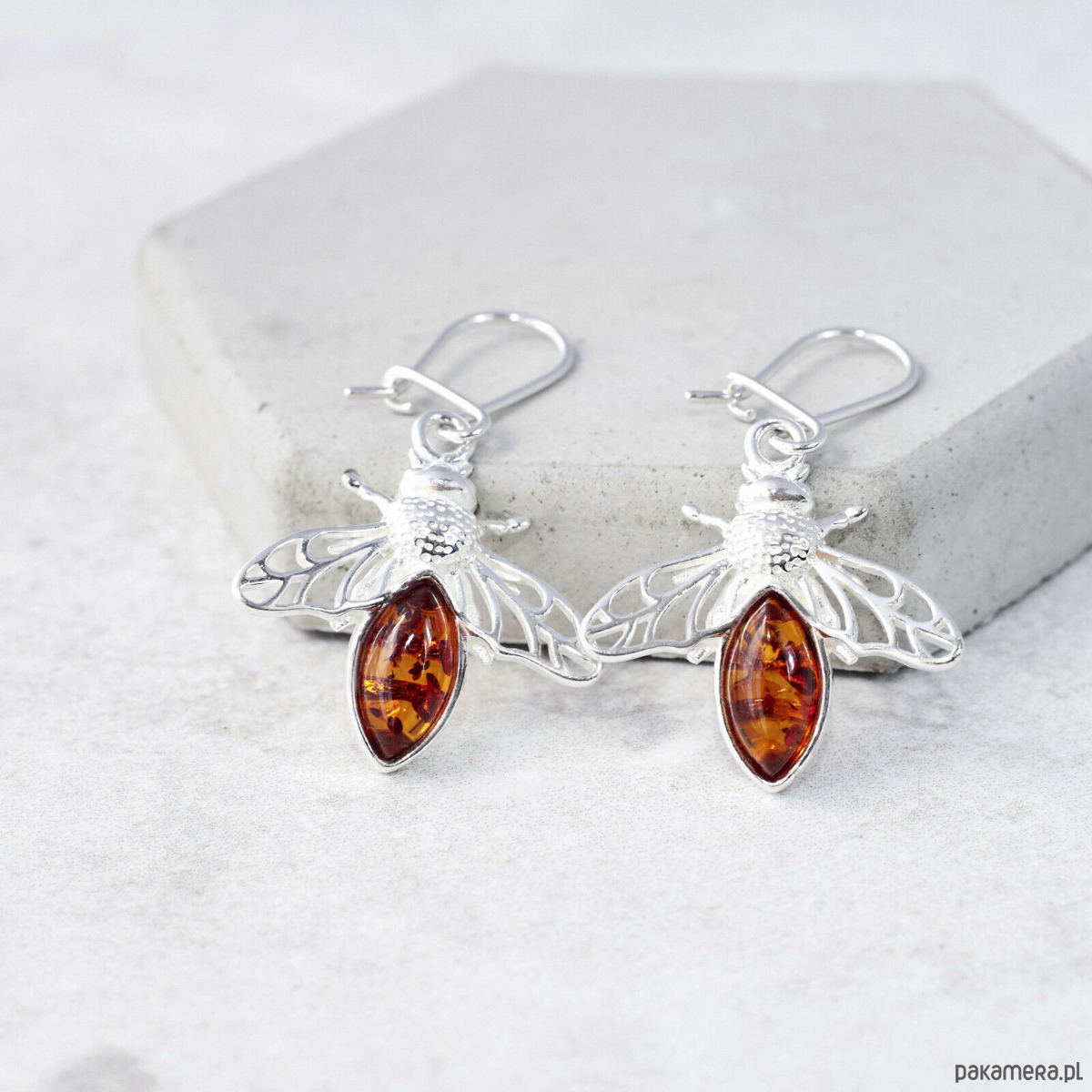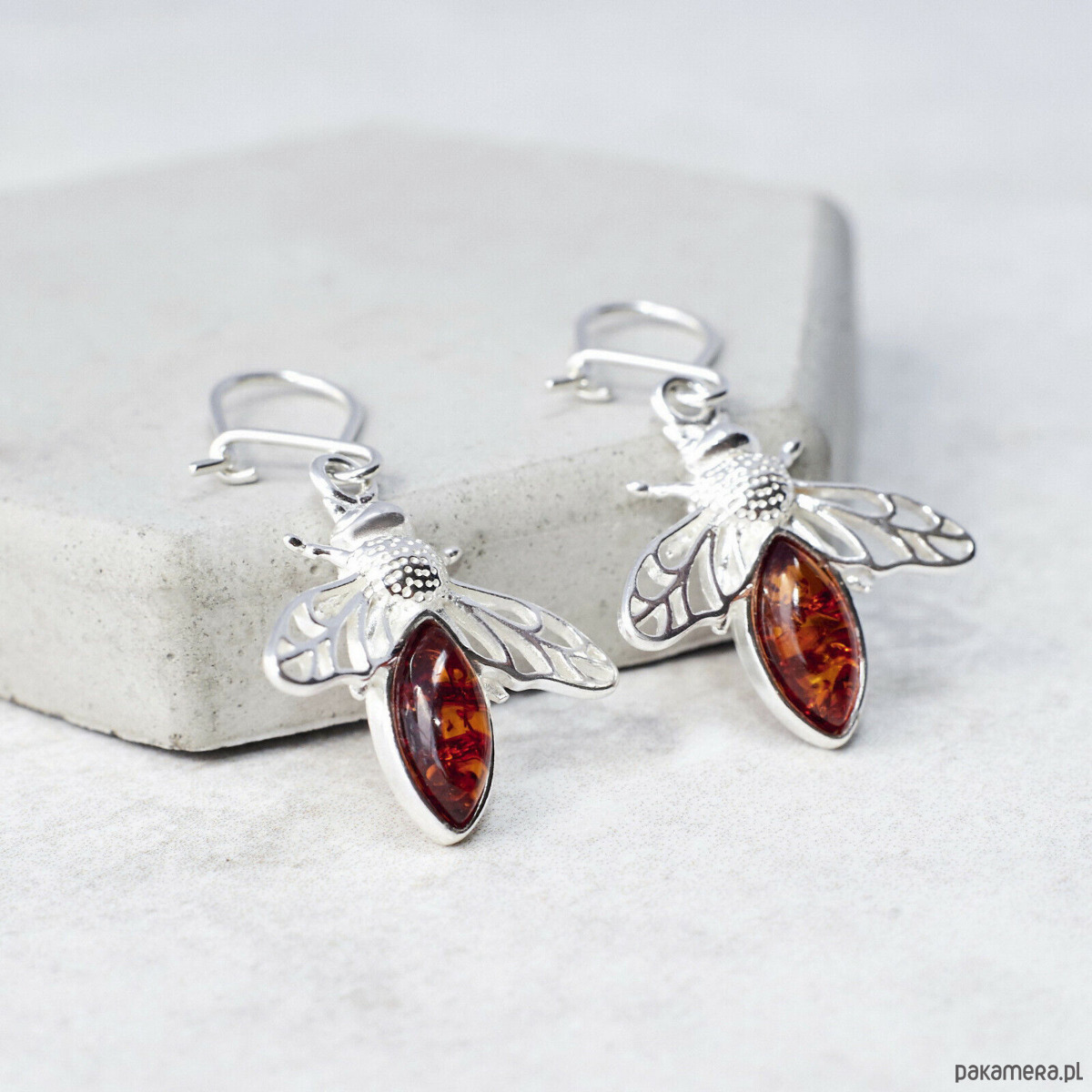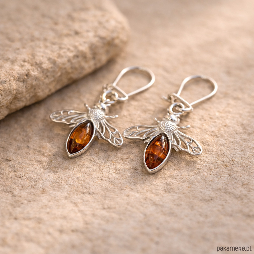 Srebrne kolczyki z bursztynem bałtyckim - Pszczółki bursztynowe