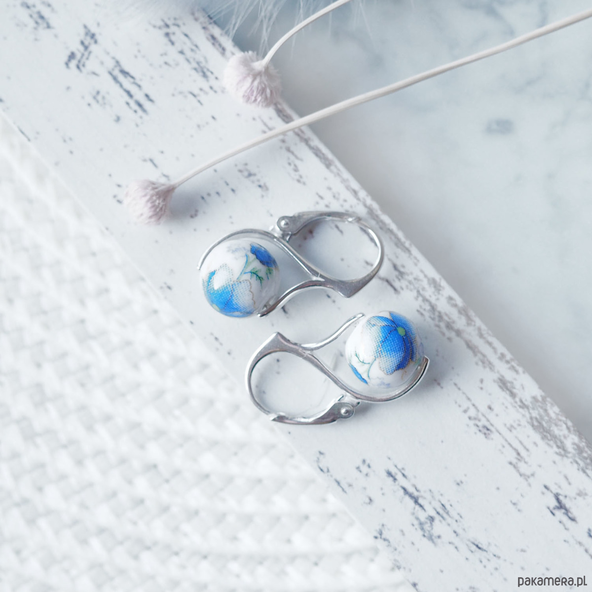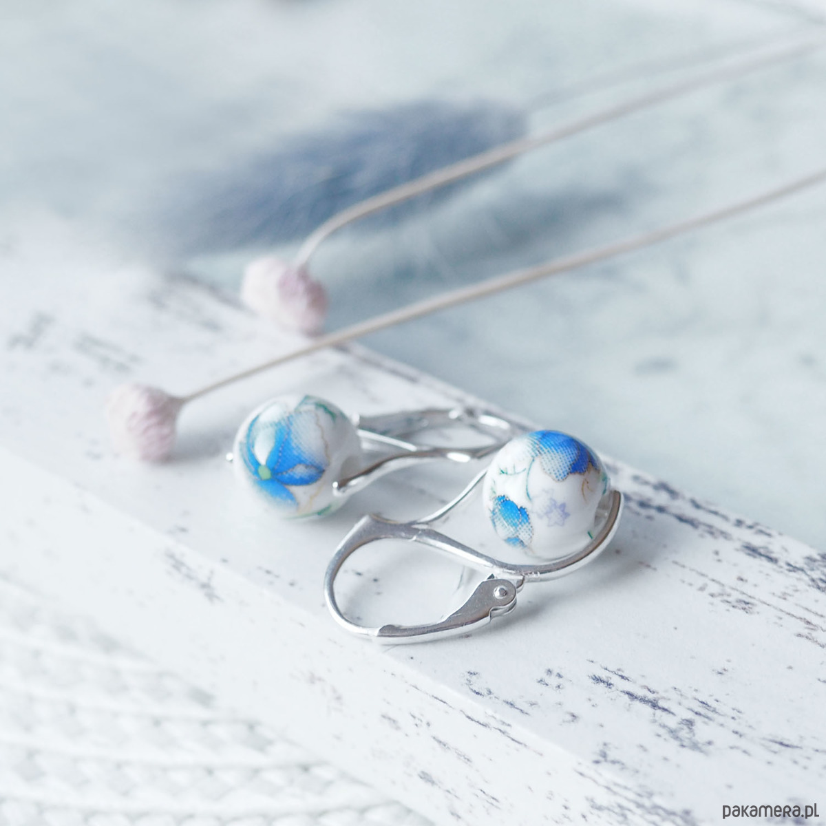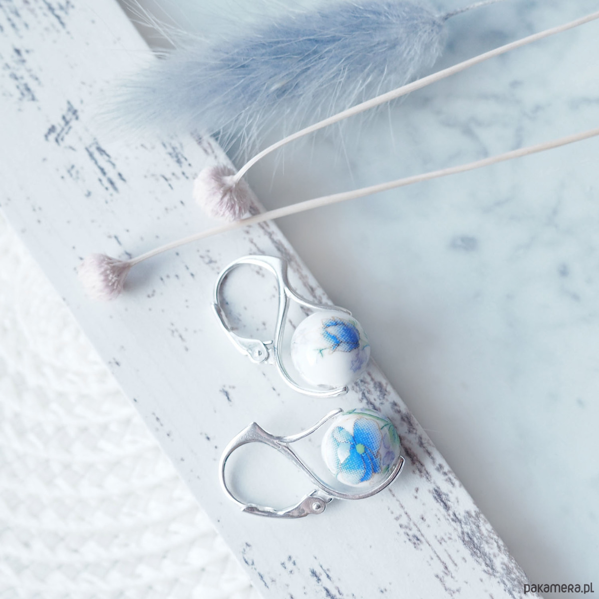 SREBRNE KOLCZYKI Z ceramicznymi kulkami w kwiaty