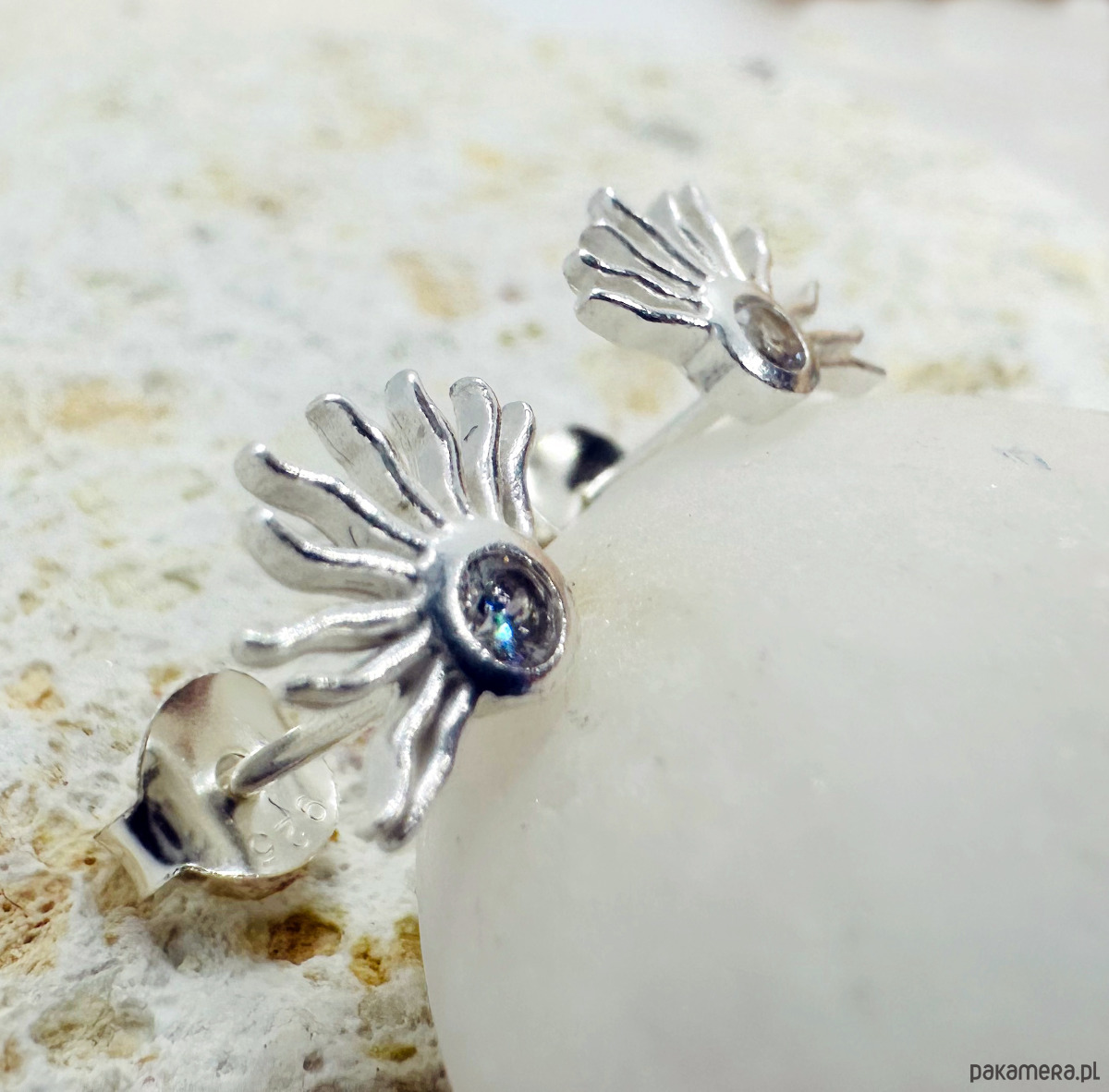 Srebrne kolczyki z cyrkonią , eleganckie sztyfty, kolczyki słońce