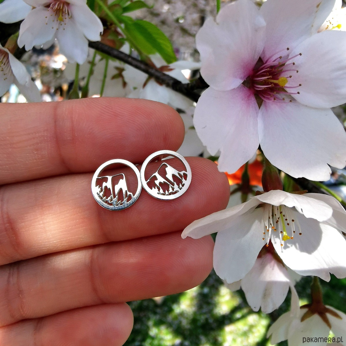 Srebrne kolczyki z górami, które odzwierciedlają nawet drobne detale górskiego krajobrazu.