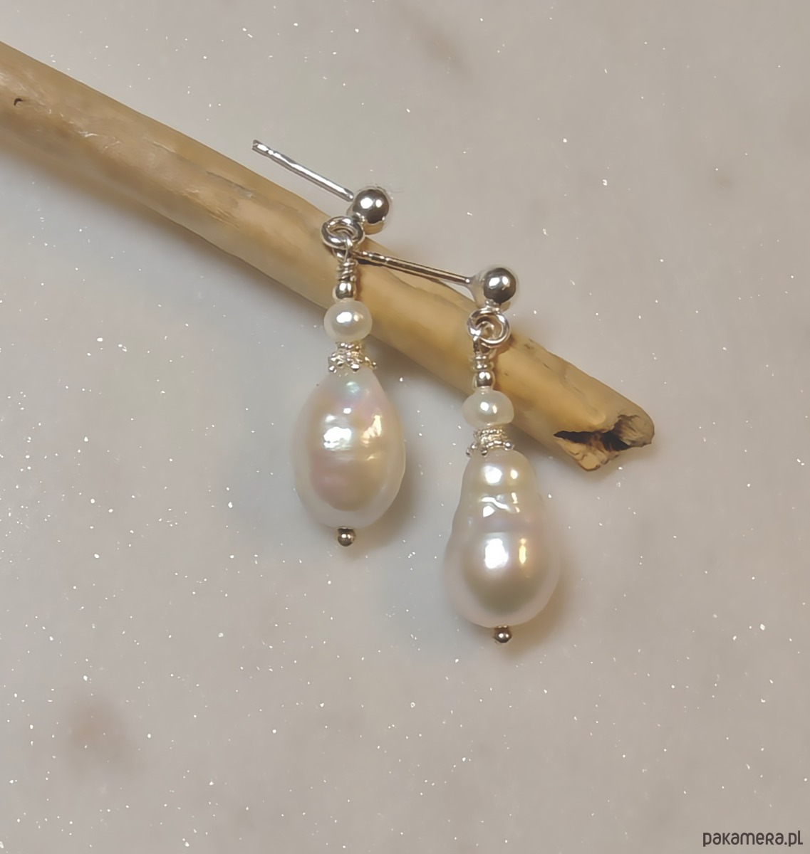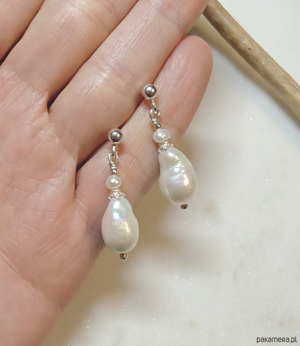 Srebrne kolczyki z perłą barokową