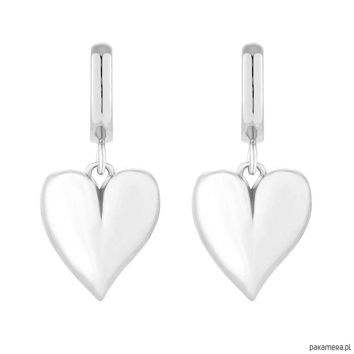 Srebrne kolczyki z sercami. Całość wykonana ze srebra 925. Zapinane na sztyft. Kolczyki posiadają zapięcia (baranki).