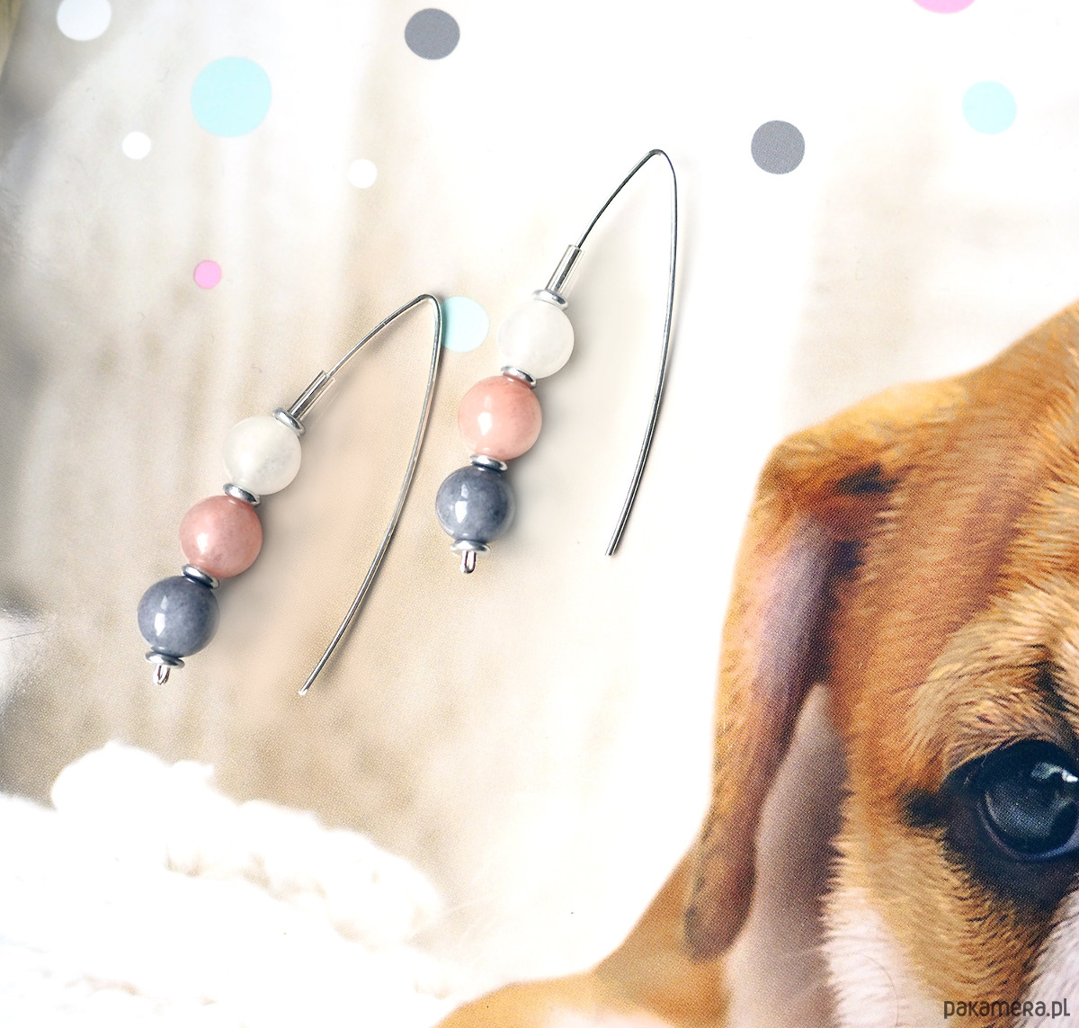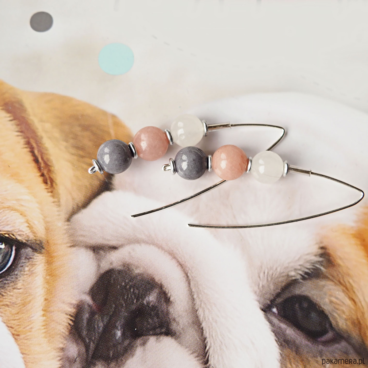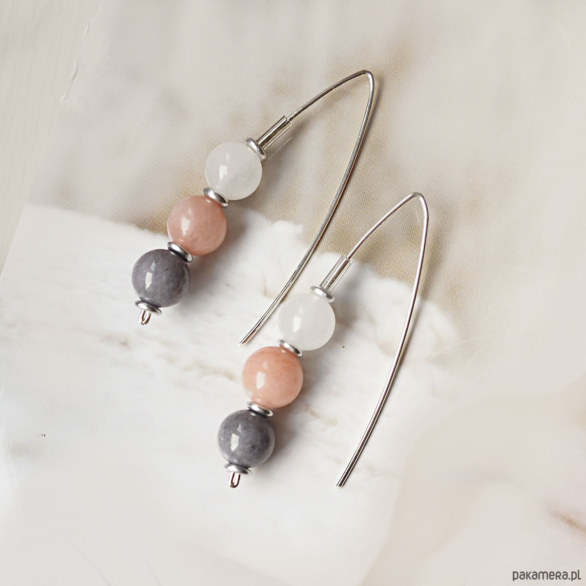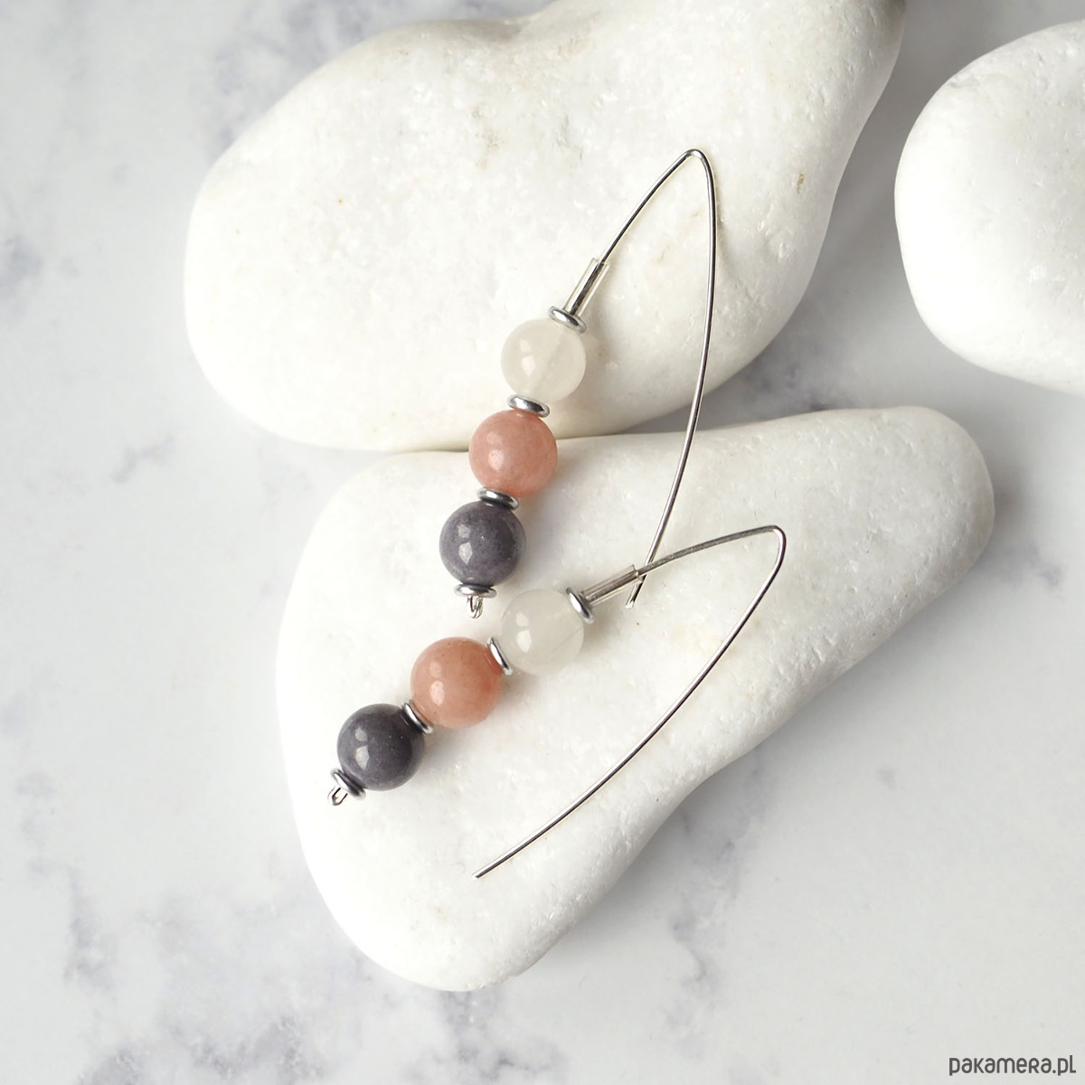 SREBRNE KOLCZYKI z trzema minerałami