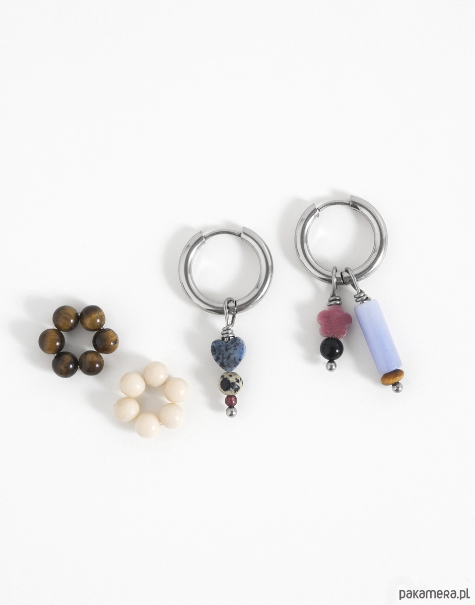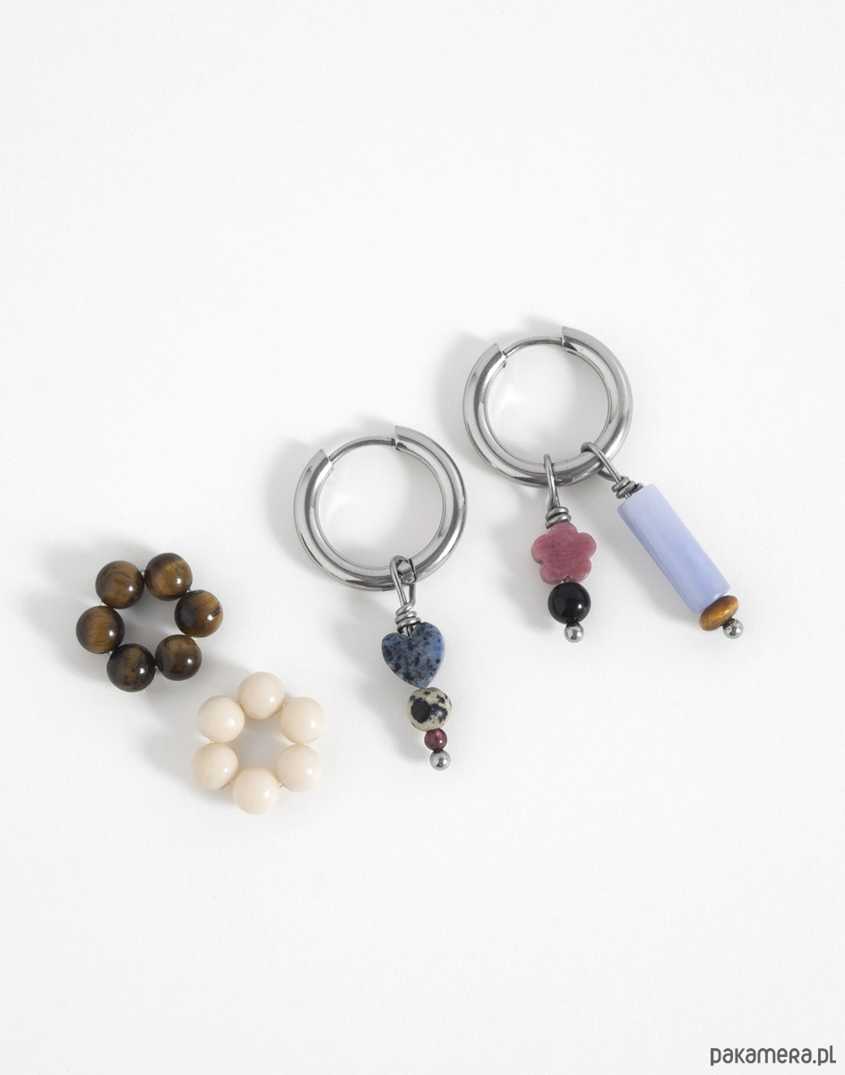 Kolczyki wykonano ze stali chirurgicznej. Zestaw zawiera 5 wymienne zawieszki.