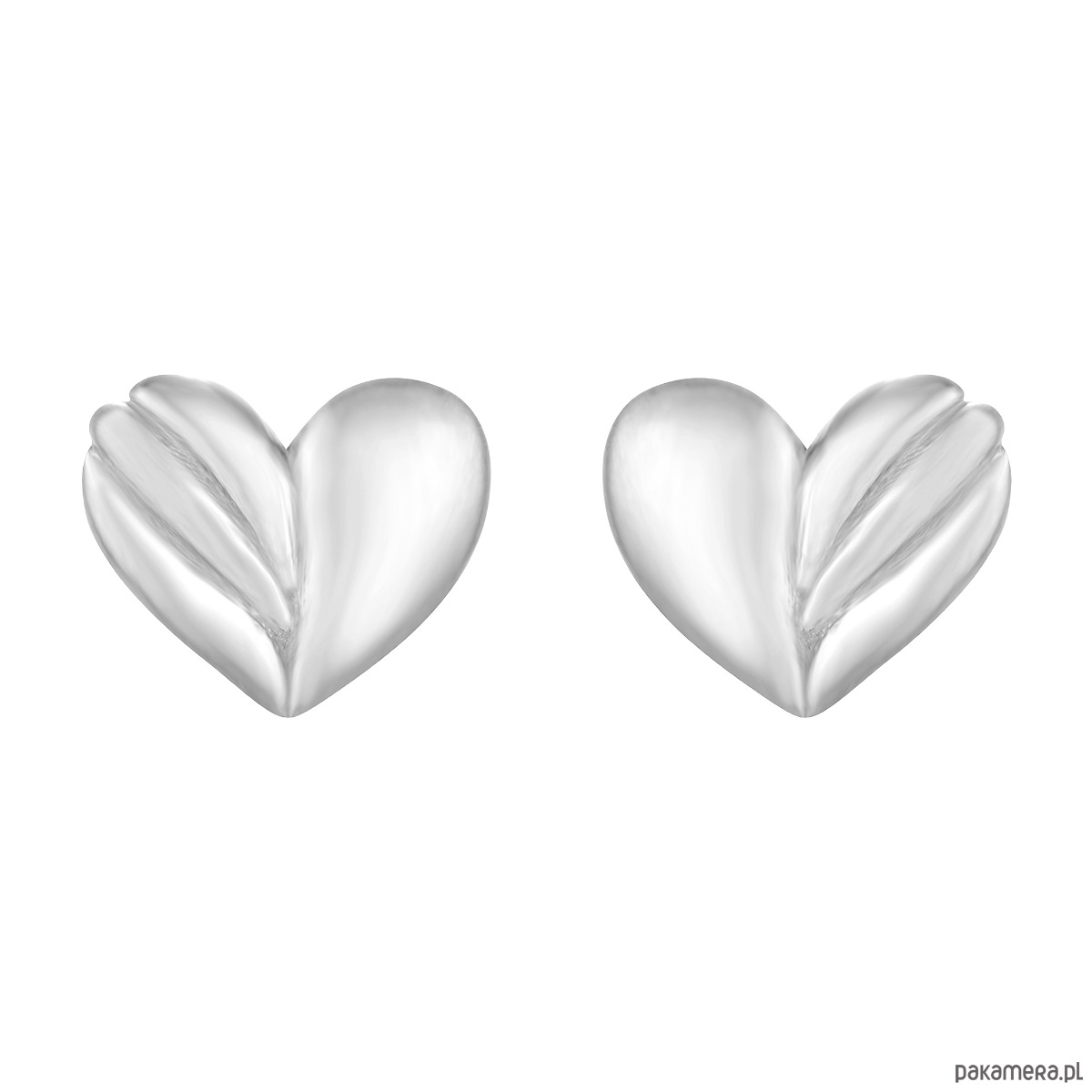 Srebrne kolczyki zdobione serduszka. Całość wykonana ze srebra 925. Zapinane na sztyft. Kolczyki posiadają zapięcia (baranki).