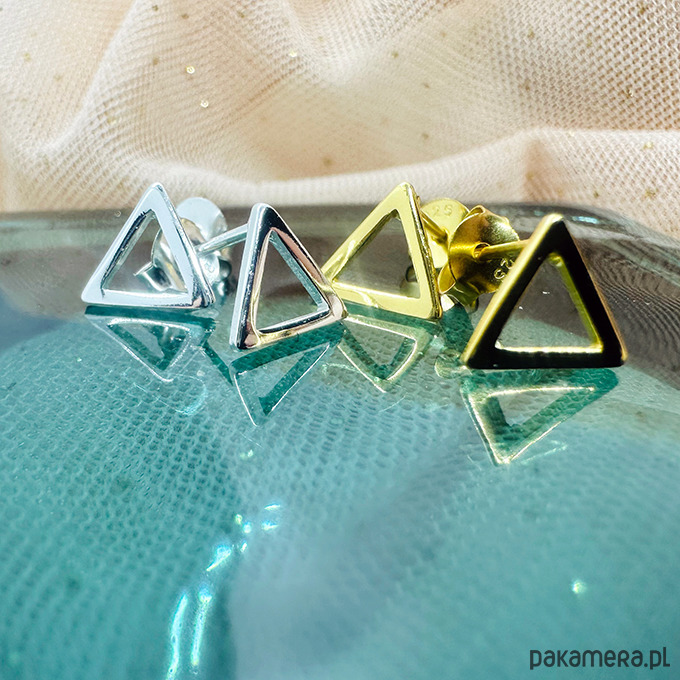 SREBRNE LUB ZŁOTE kolczyki trójkąty, sztyfty trójkąt