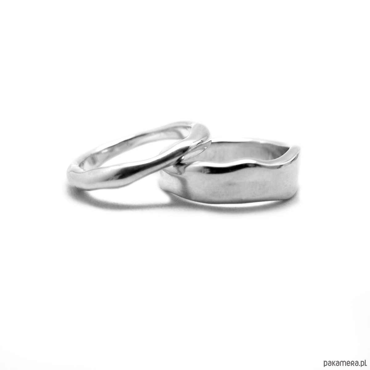 Srebrne obrączki ślubne Blurb to płynące, organiczne powierzchnie. Naturalnie ukształtowane, zastygłe w ruchu obrączki wykonane są ze srebra próby 0,925.