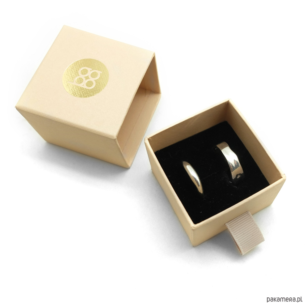 Unikatowa biżuteria wykonana jest ręcznie z najwyższą dbałością o detale. Każda obrączka ma wybitą próbę stopu metalu szlachetnego, z którego jest wykonana oraz imiennik autorki.