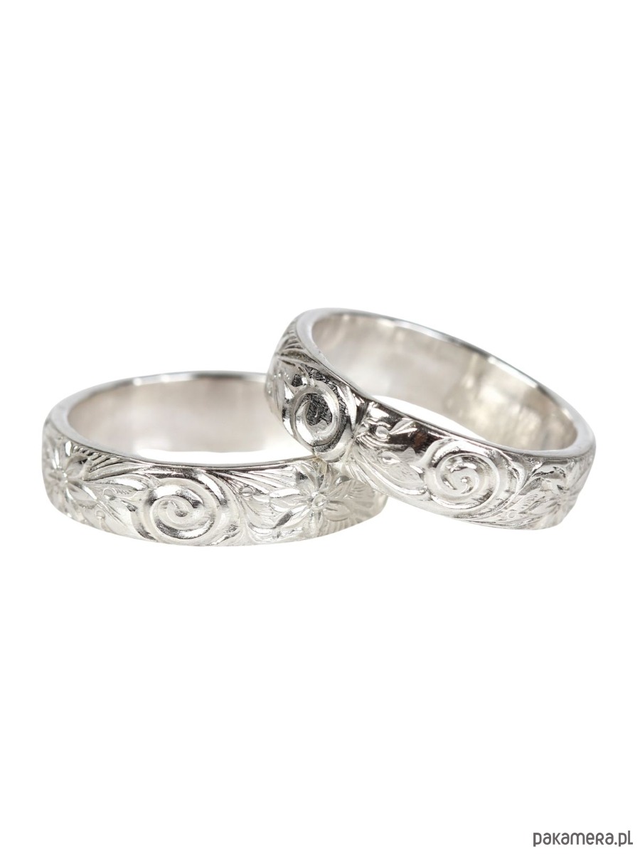 Ręcznie wykonane obrączki ze srebra z piękną botaniczną fakturą