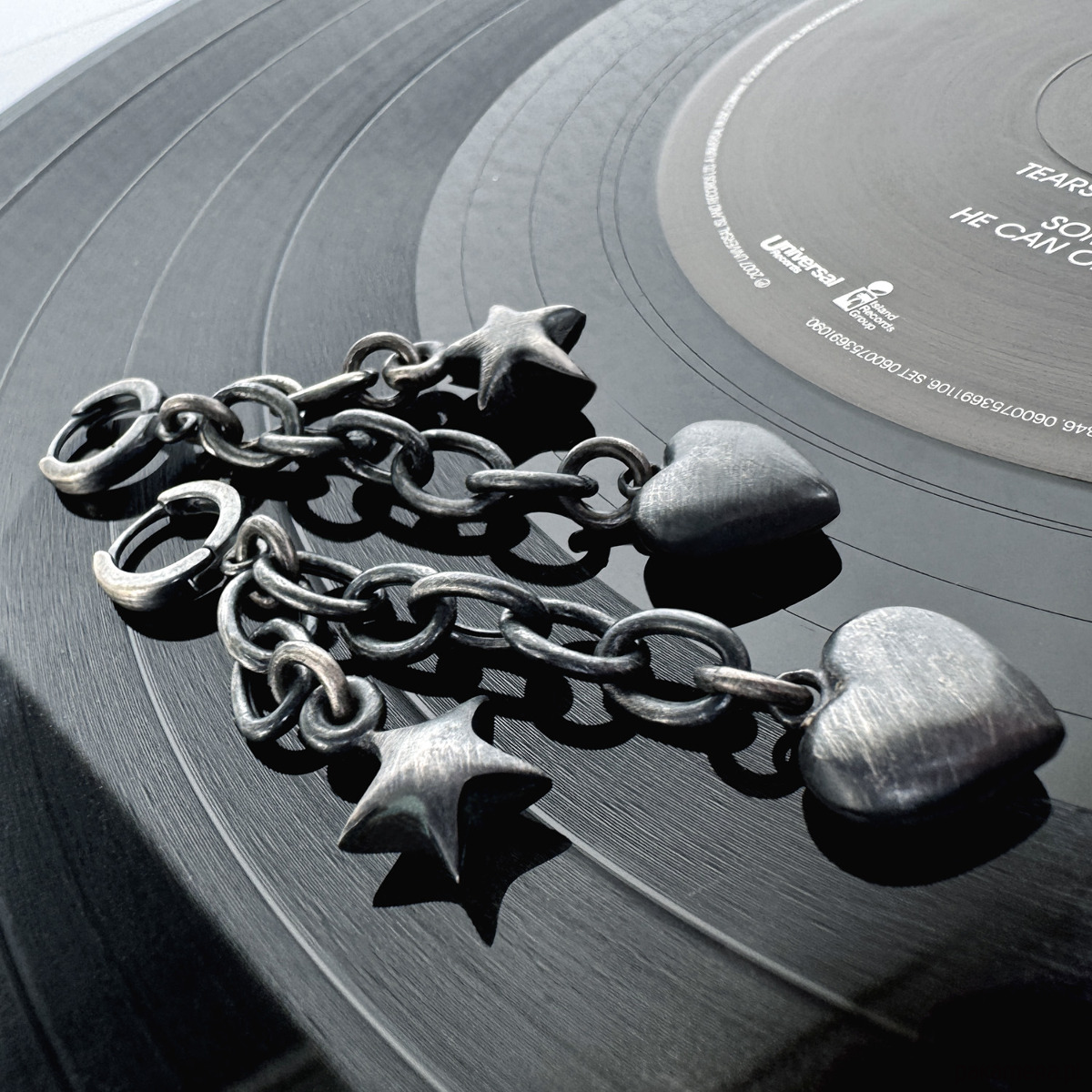 Srebrne, podwójne kolczyki Serduszka i Gwiazdki Rockstar