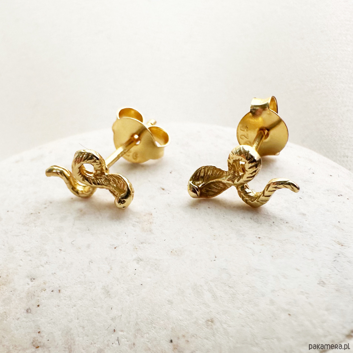 Srebrne pozłacane kolczyki węże, sztyfty z wężami, kobra