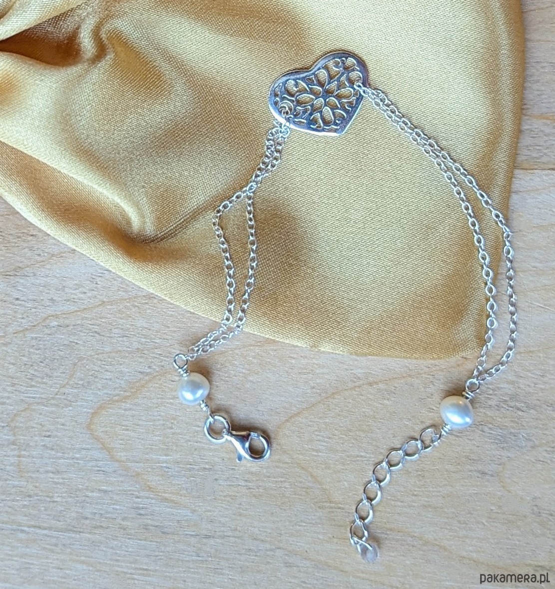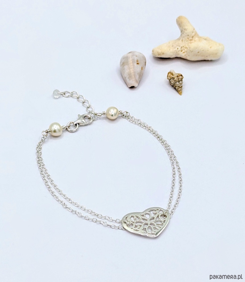 Srebrne serce - bransoletka z perłami