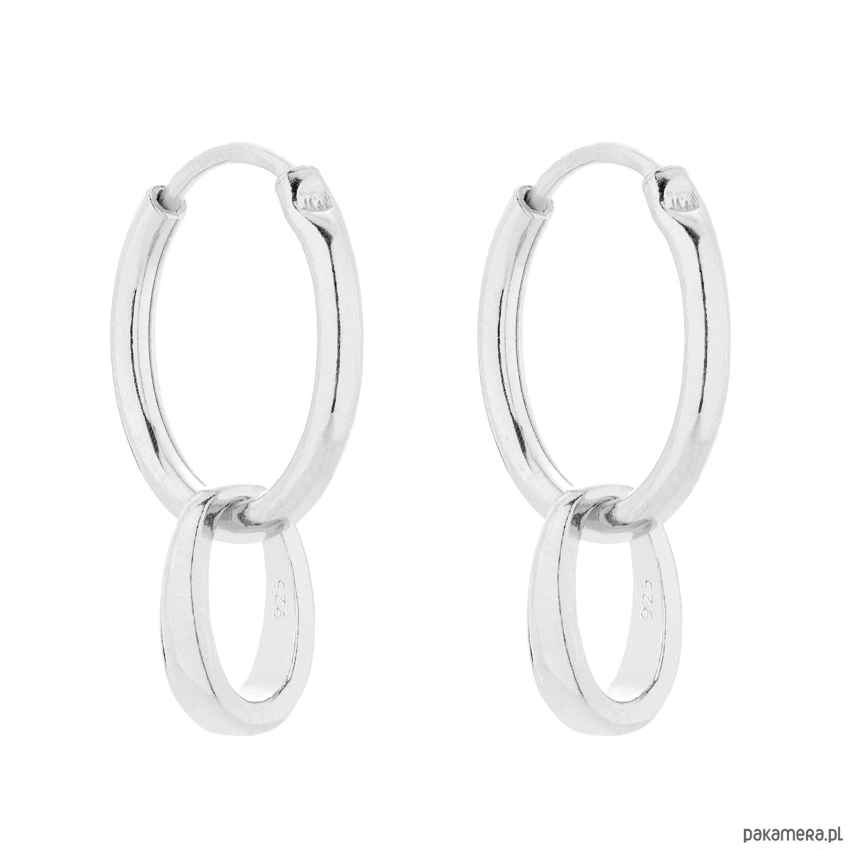 Małe złote kolczyki koła z zawieszką. Całość wykonana ze srebra 925.