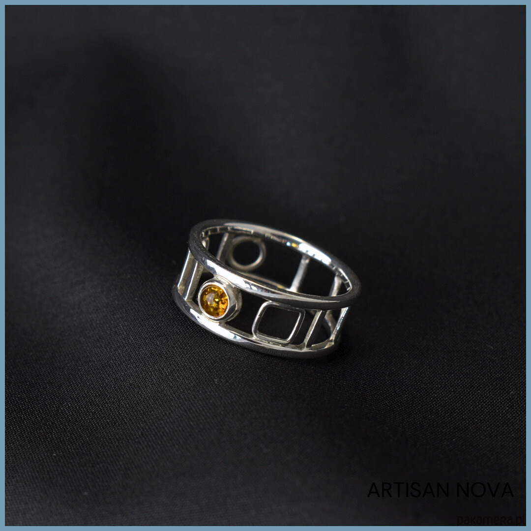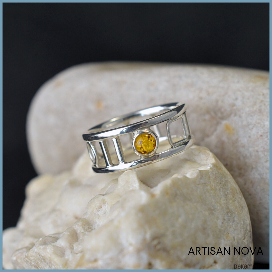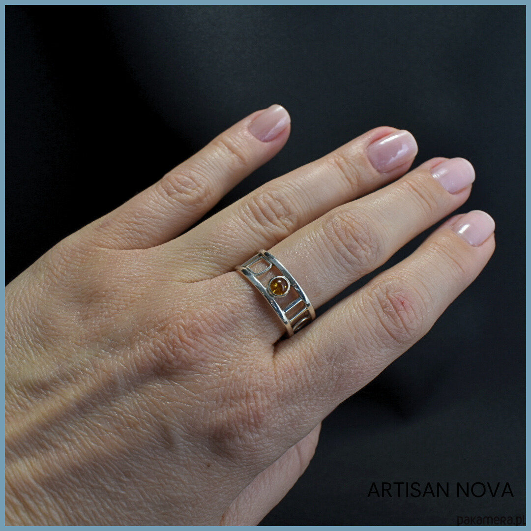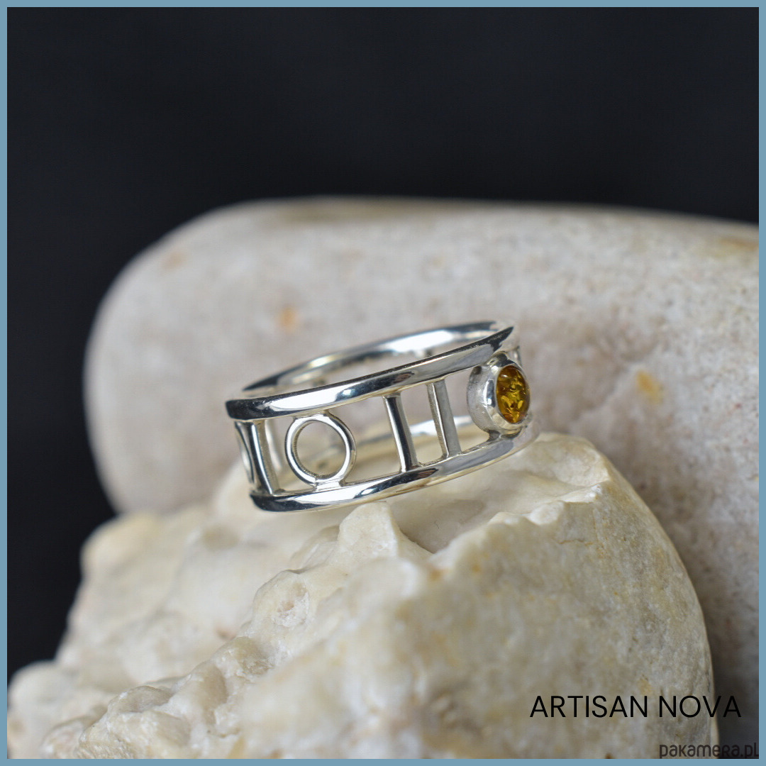W pracowni ARTISAN NOVA, z dbałością o każdy szczegół, powstaje ten ręcznie wykonany, srebrny, delikatny i geometryczny pierścionek ze srebra próby 925. Jego wyjątkowy design łączy subtelną formę z naturalnym pięknem bursztynu bałtyckiego, pozyskanego od renomowanego dostawcy. Kamień ten, ze swoim ciepłym, miodowym odcieniem, dodaje pierścionkowi naturalnego blasku i szlachetności.