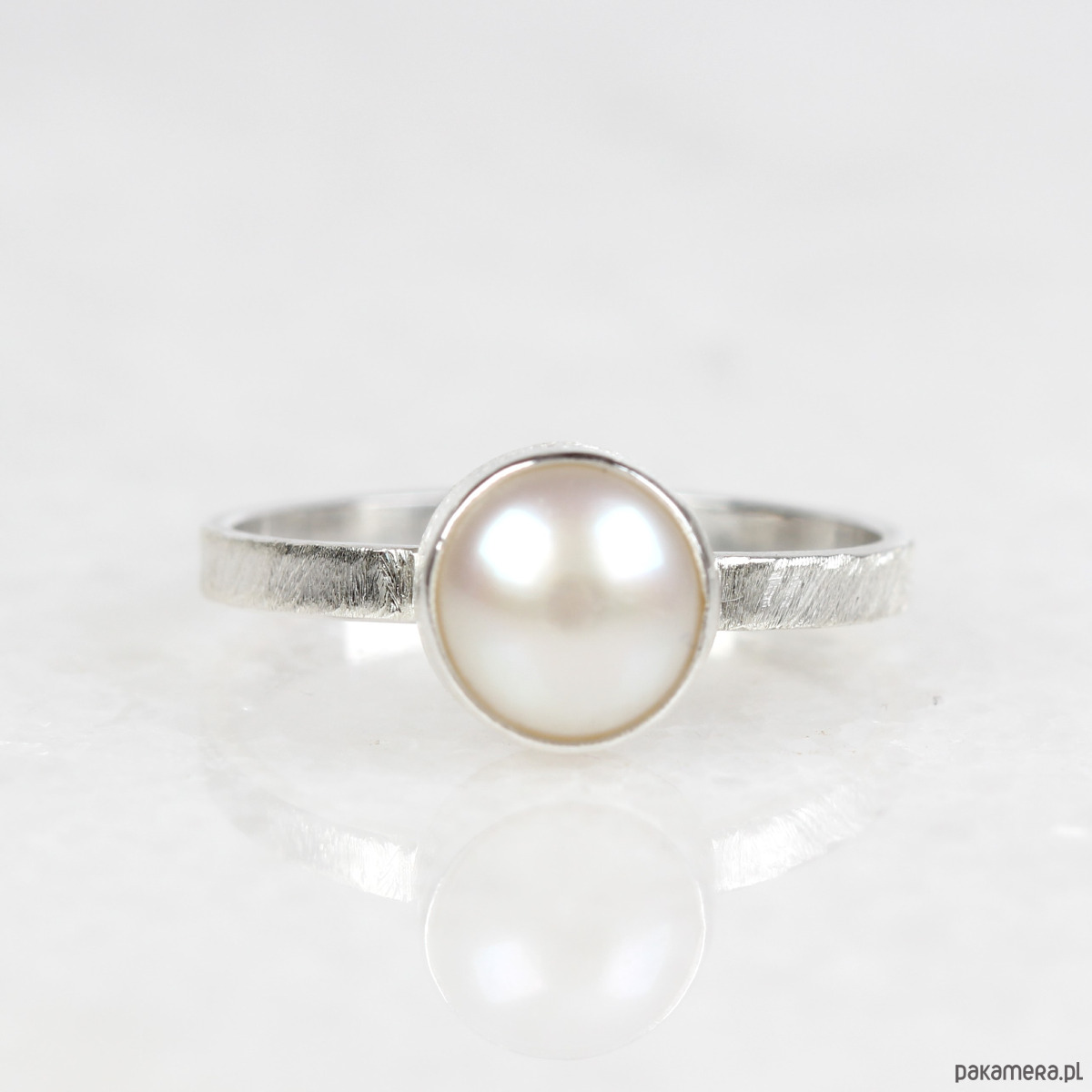 Ręcznie wykonany pierścionek z perłą ze srebra z przepięknie "porysowaną" fakturą z najnowszej kolekcji GRAFFIO. W kolekcji przedstawiłam nieidealne idealne piękno wyrażone zestawieniem gładkiej perły z porysowanym srebrem.