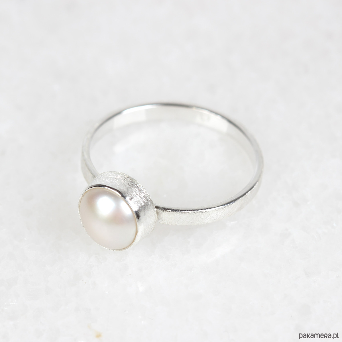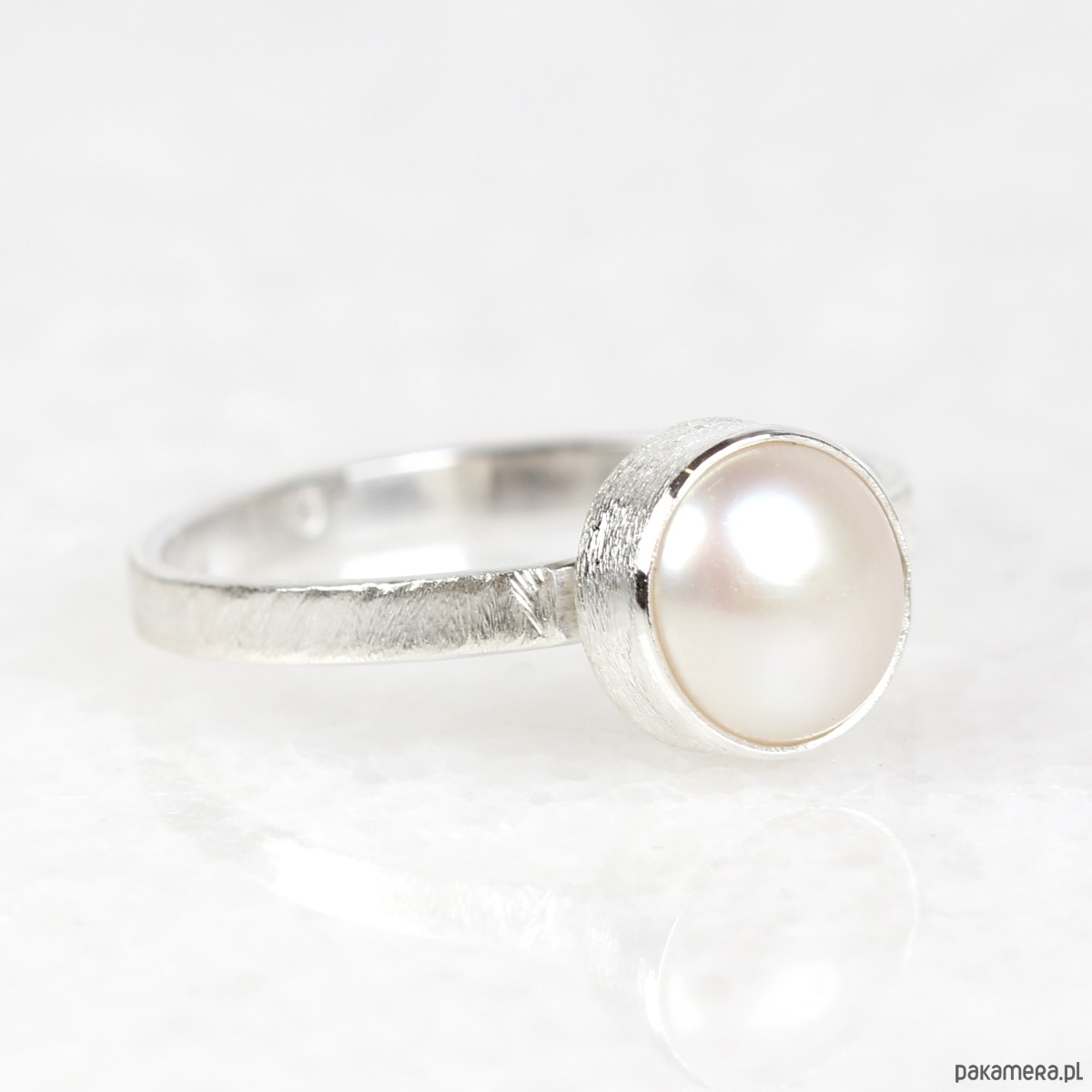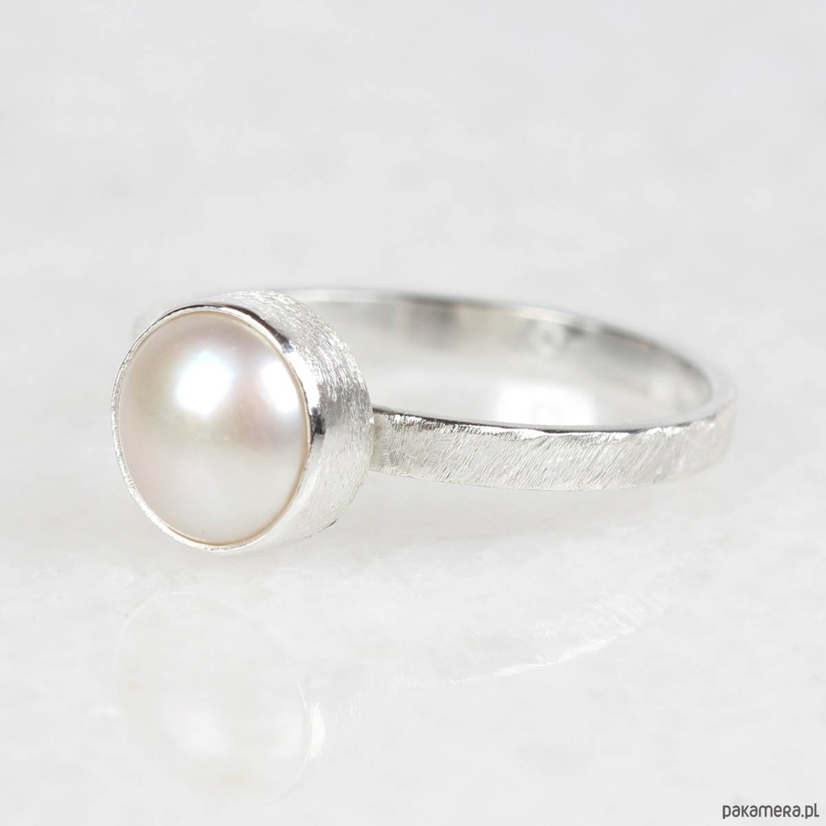 Ręcznie wykonany pierścionek z perłą ze srebra z przepięknie "porysowaną" fakturą z najnowszej kolekcji GRAFFIO. W kolekcji przedstawiłam nieidealne idealne piękno wyrażone zestawieniem gładkiej perły z porysowanym srebrem.