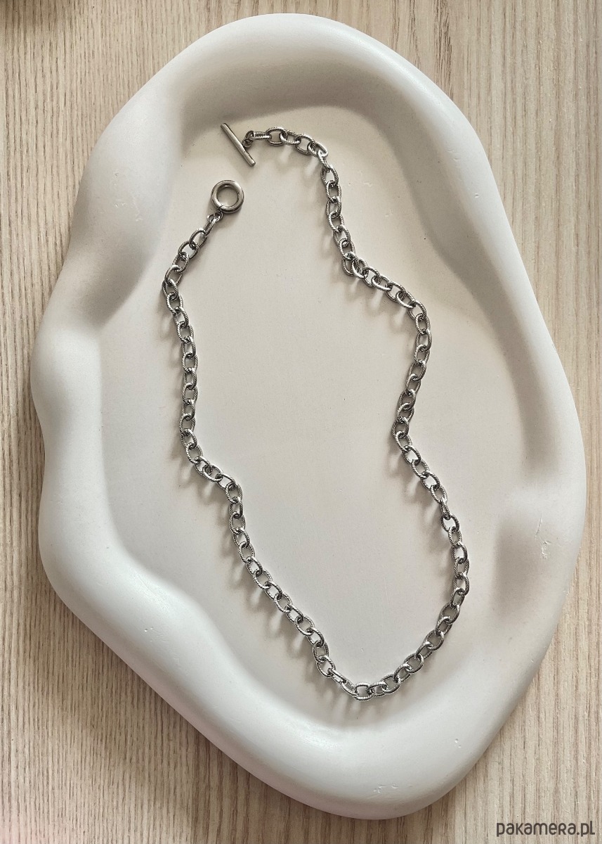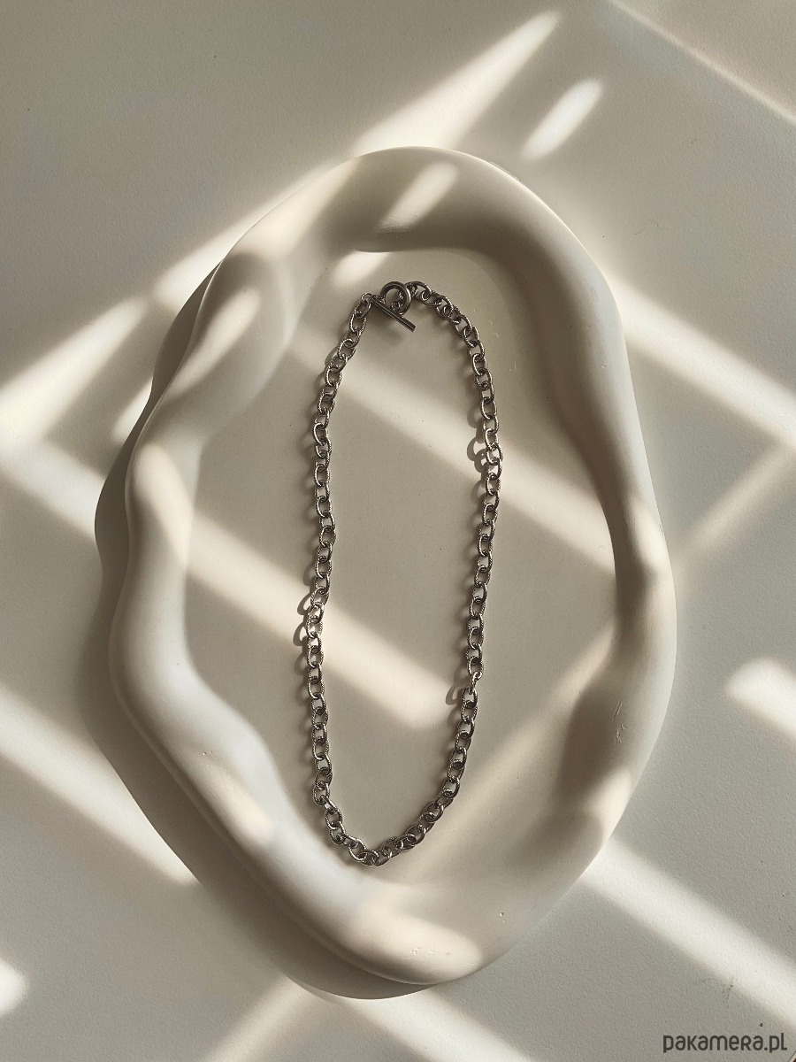 Srebrny naszyjnik można nosić pojedynczo, lub skomponować go z łańcuchami o różnej długości.