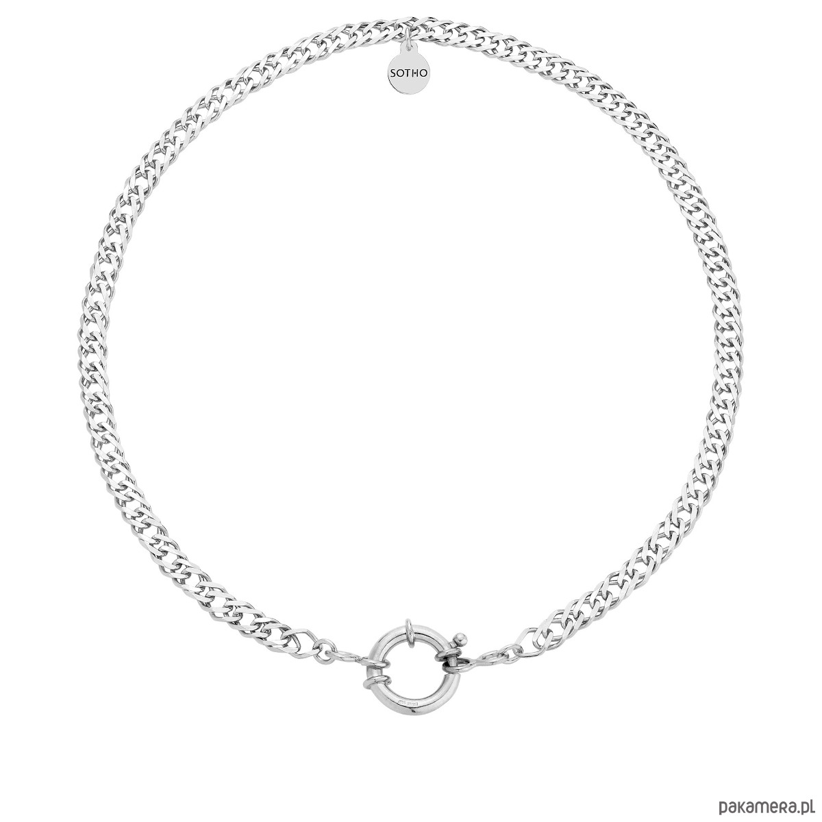 Srebrny masywny łańcuch z ozdobnym zapięciem