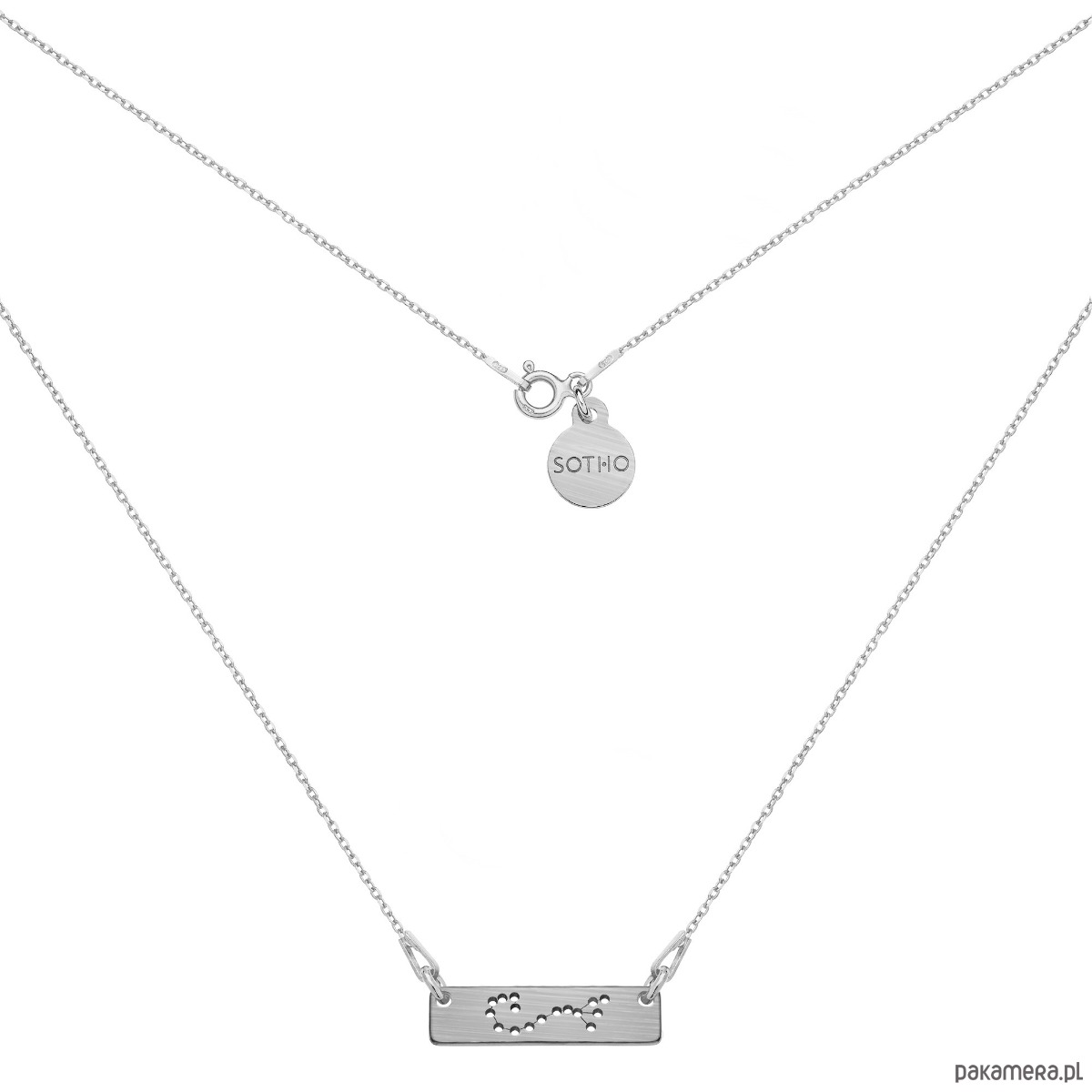 Srebrny matowy naszyjnik łańcuszkowy zdobiony konstelacją zodiakalną Skorpiona i zawieszką z logo marki. Całość wykonana ze srebra 925.