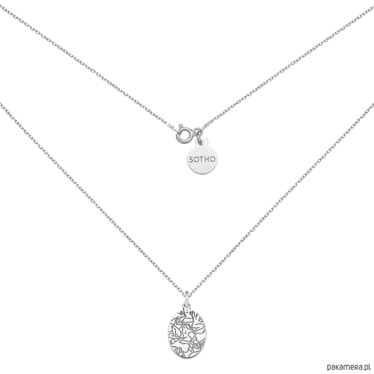 Srebrny naszyjnik z medalionem Art N°2 i zawieszką z logo marki. Całość wykonana ze srebra 925.