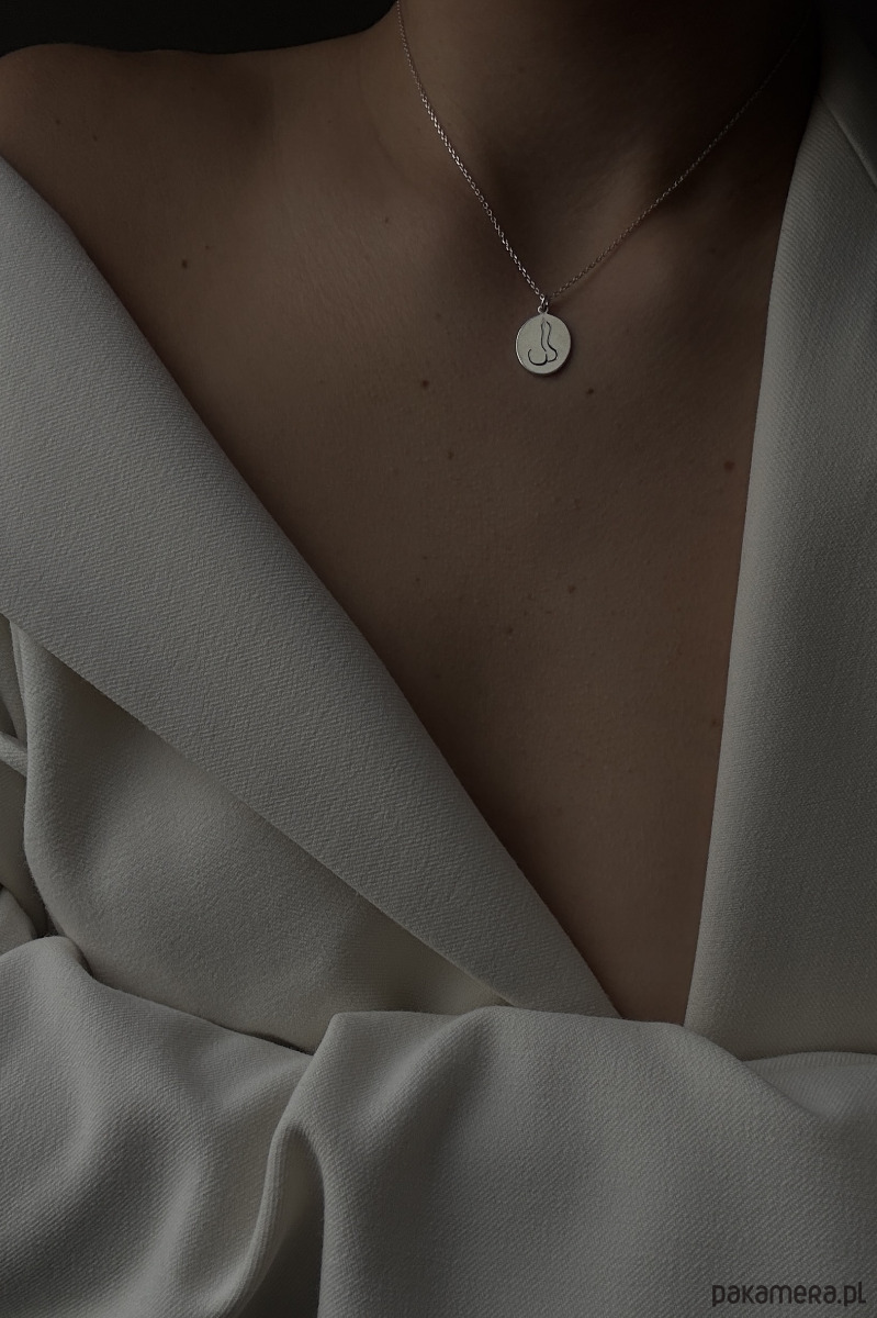Srebrny naszyjnik z medalionem Body N°2 i zawieszką z logo marki. Całość wykonana ze srebra 925.