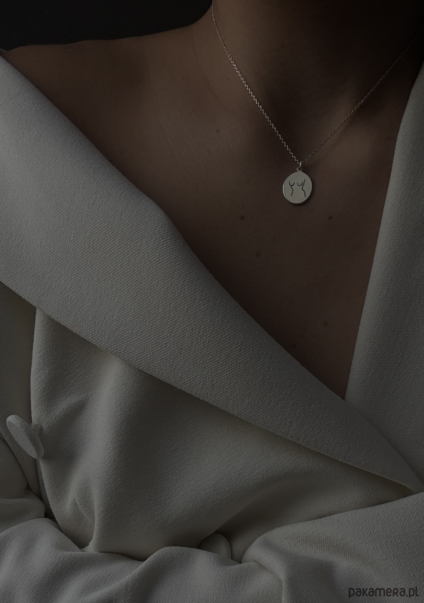 Srebrny naszyjnik z medalionem Body N°3 i zawieszką z logo marki. Całość wykonana ze srebra 925.