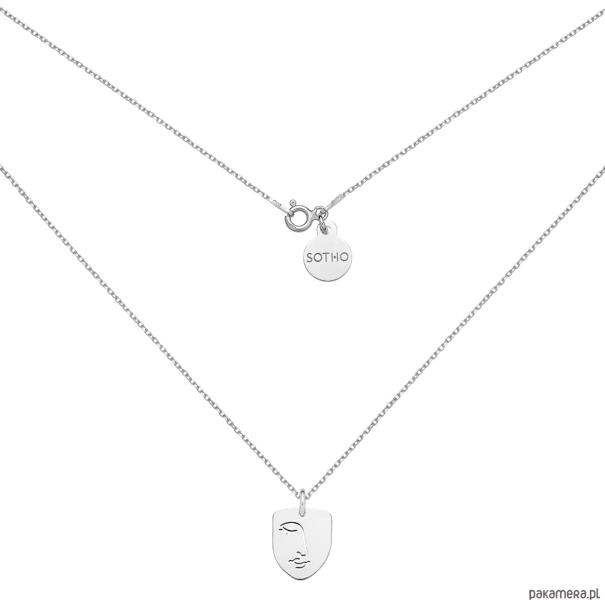 Srebrny naszyjnik z medalionem Face N°4 i zawieszką z logo marki. Całość wykonana ze srebra 925.