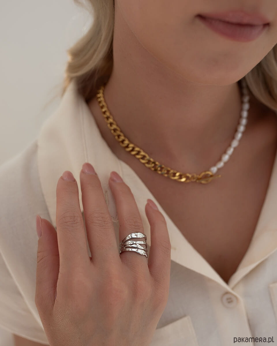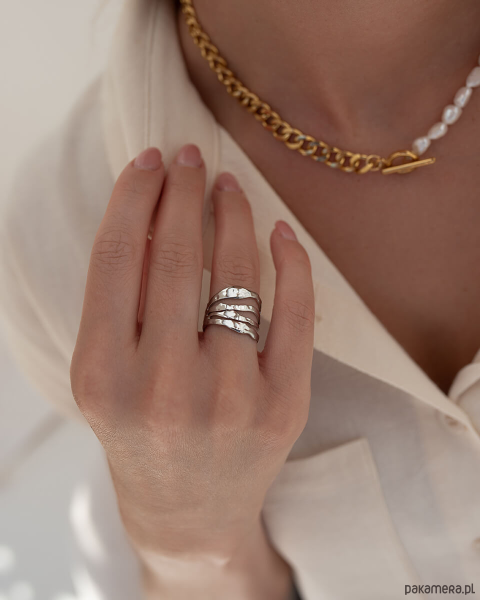 Ten oryginalny srebrny pierścionek to idealny wybór dla każdej kobiety, która ceni sobie wyrafinowany design i wysoką jakość. Wykonany jest z najwyższej jakości stali chirurgicznej 316L, przez co jest nie tylko piękny, ale także wytrzymały i hipoalergiczny. Regulowany rozmiar sprawia, że pasuje na każdy palec, co czyni go również idealnym prezentem. Subtelny srebrny kolor dodaje mu elegancji, z kolei unikalny design przyciąga uwagę. Ten pierścionek jest doskonałym dodatkiem do każdej stylizacji i może być noszony zarówno na co dzień, jak i na specjalne okazje. Zamów go już dziś i poczuj się wyjątkowo!
