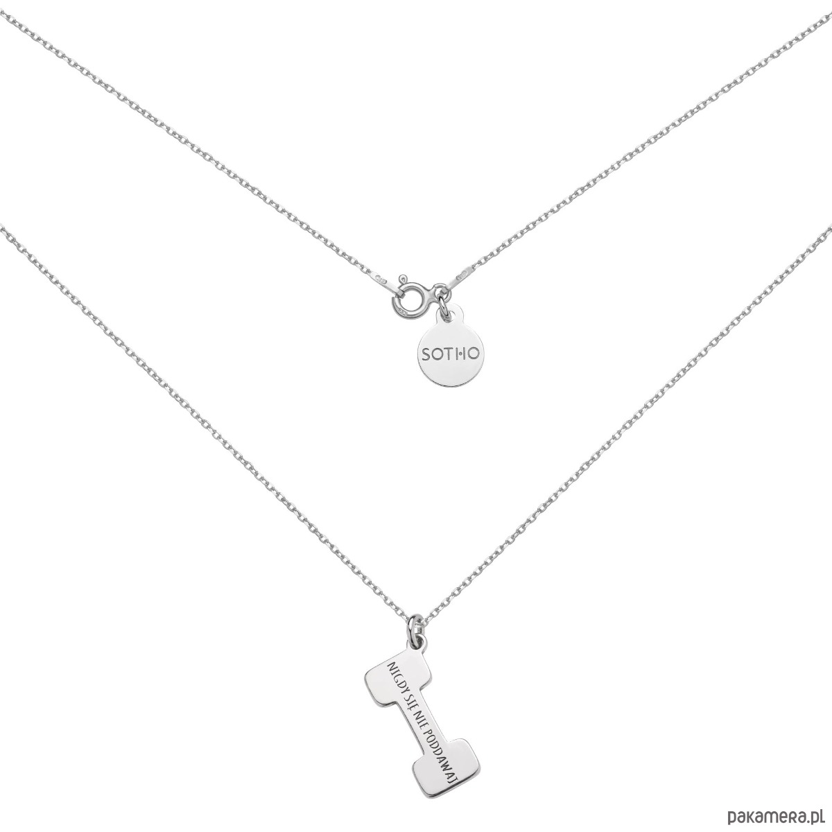 Srebrny naszyjnik ciężarek NIGDY SIĘ NIE PODDAWAJ