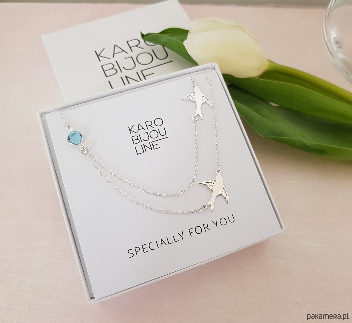 Srebrny naszyjnik od KAROBIJOULNE, to subtelne i efektowne dopełnienie każdej kobiecej stylizacji. Znakomicie sprawdzi się jako prezent z własnym spersonalizowanym tekstem wewnątrz pudełka.