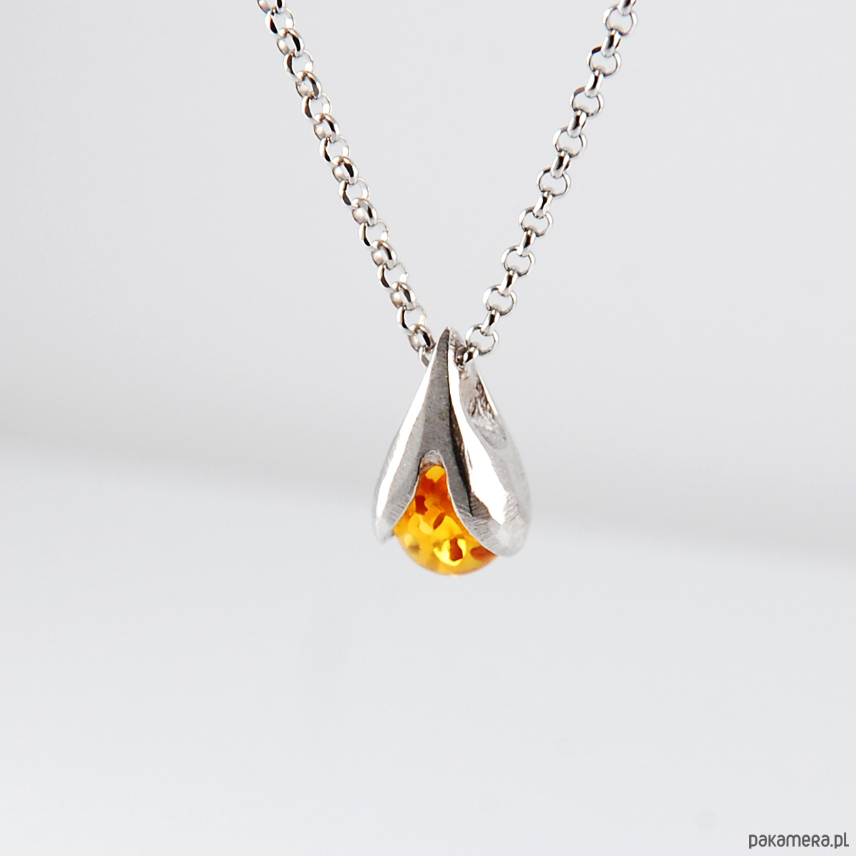 Srebrny naszyjnik Konwalia z cytrynowym bursztynem
