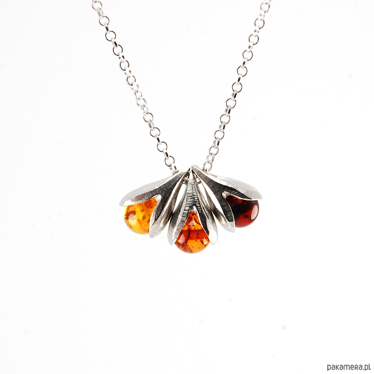 Srebrny naszyjnik Konwalia z wiśniowym bursztynem