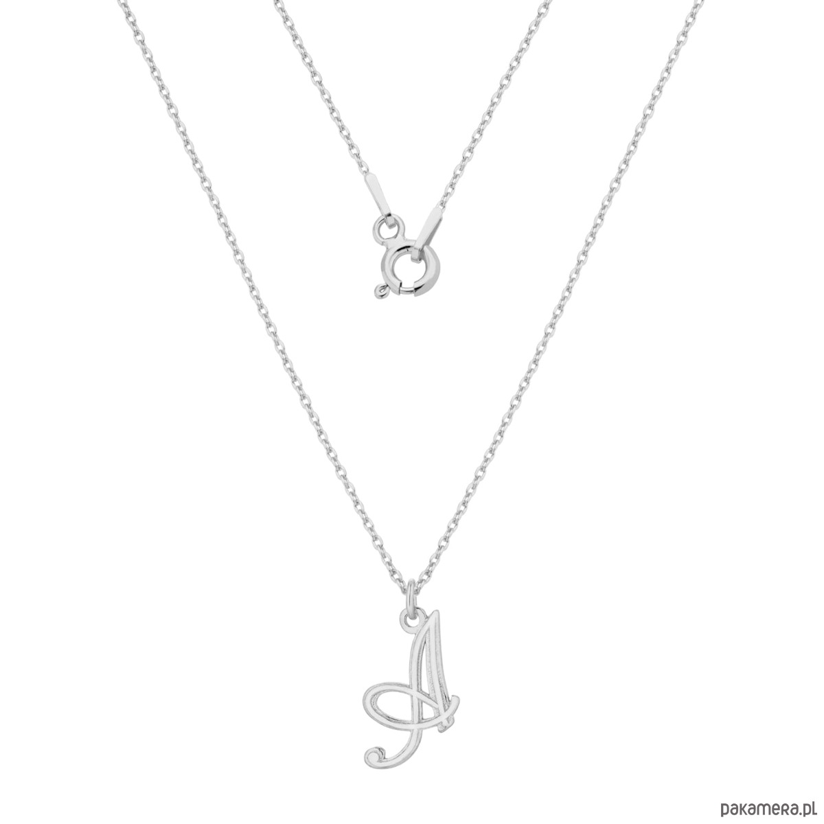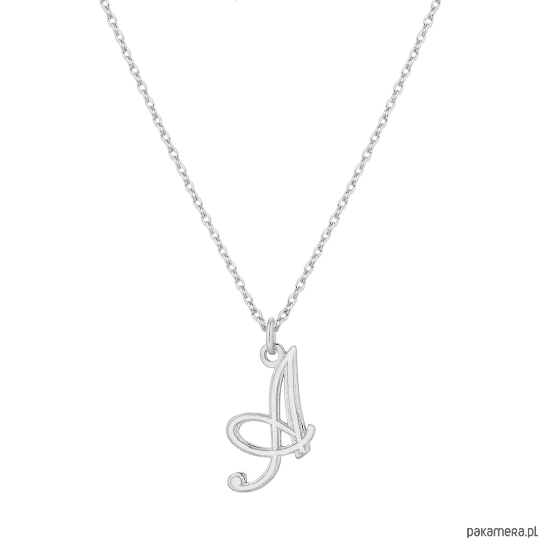 Subtelny, elegancki naszyjnik ze srebra próby 925 z zawieszką w kształcie litery A.