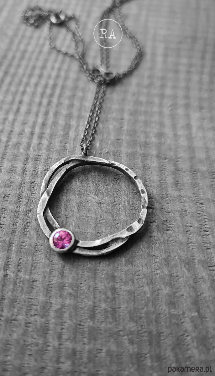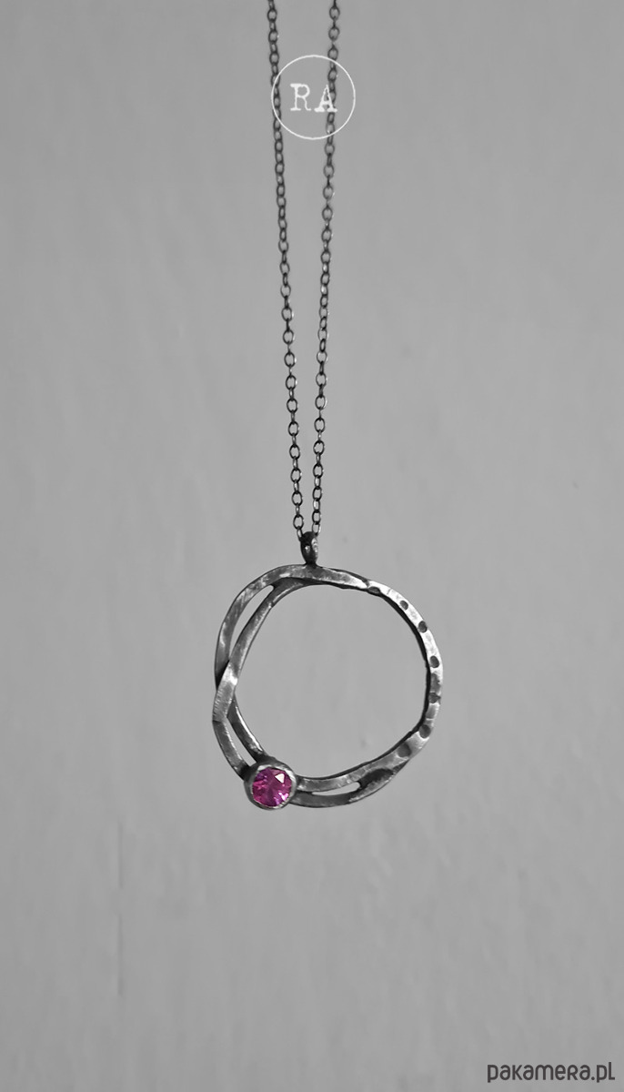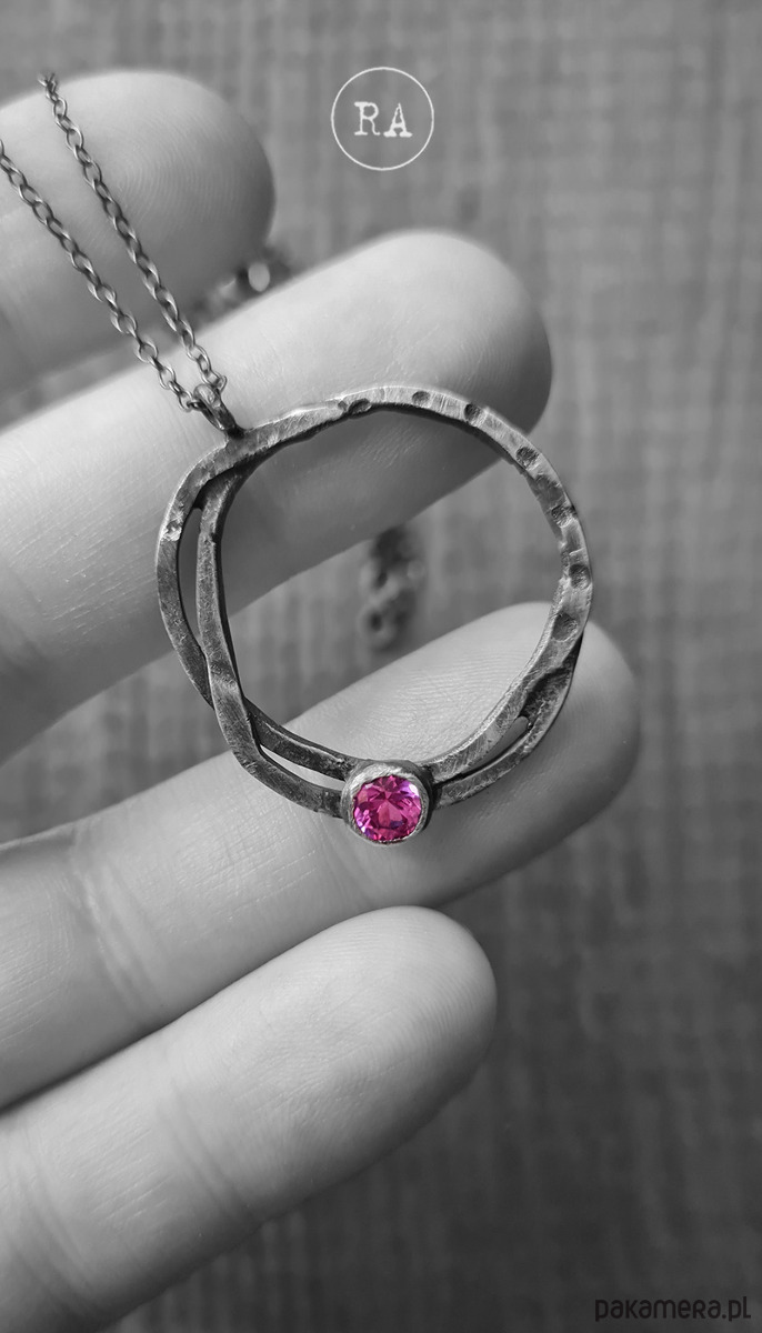 Wisiorek z wykonany ręcznie, cyrkonia w kolorze różowym, wisiorek ok. 3 cm.