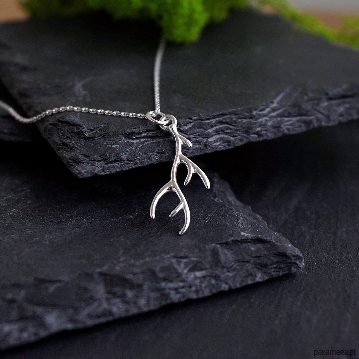 Naszyjnik wykonany ze srebra o pr.925 i ozdobiony motywem poroża jelenia.