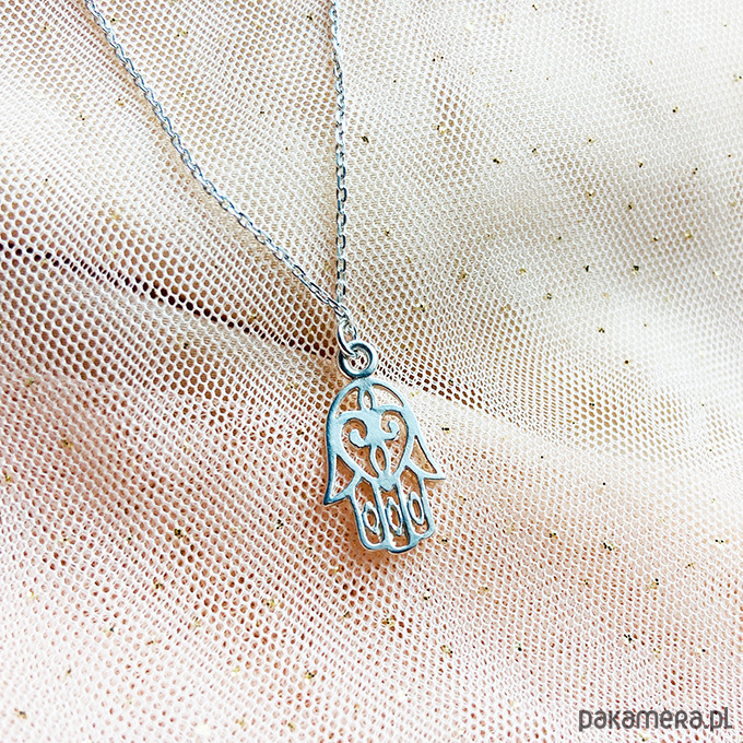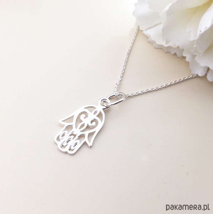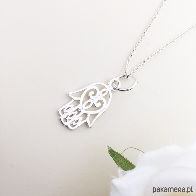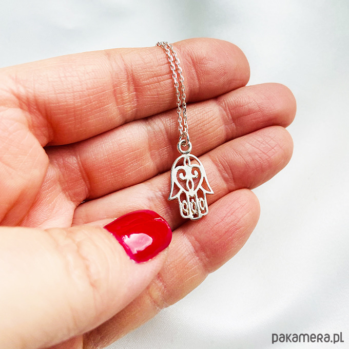 Wyjątkowy naszyjnik z zawieszka w kształcie ręki Fatimy.