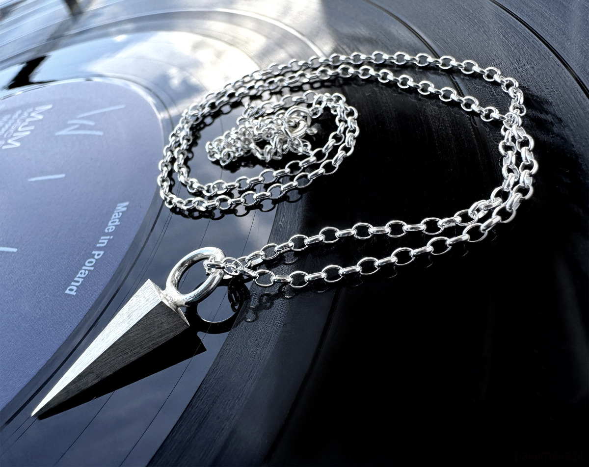 Naszyjnik wykonany z jasnego srebra próby 925. Naszyjnik składa się z wisiorka w kształcie kolca oraz łańcuszka LAN 002 dostępnego w naszym sklepie. Idealny wybór, jeśli chcesz podkreślić swój charakter i drapieżną osobowość;)