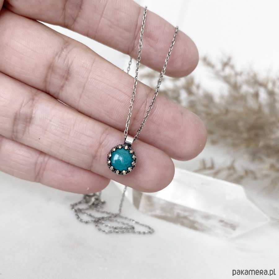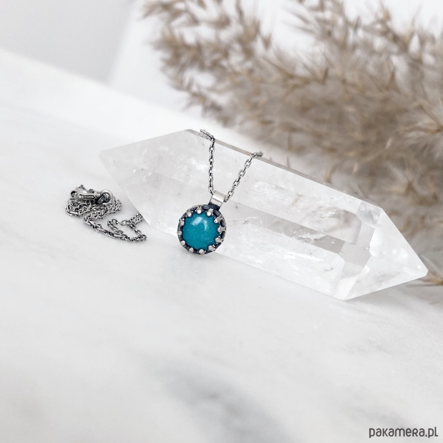 Materiał: oksydowane srebro próby 925 + naturalny turkus w koronkowej, srebrnej oprawie