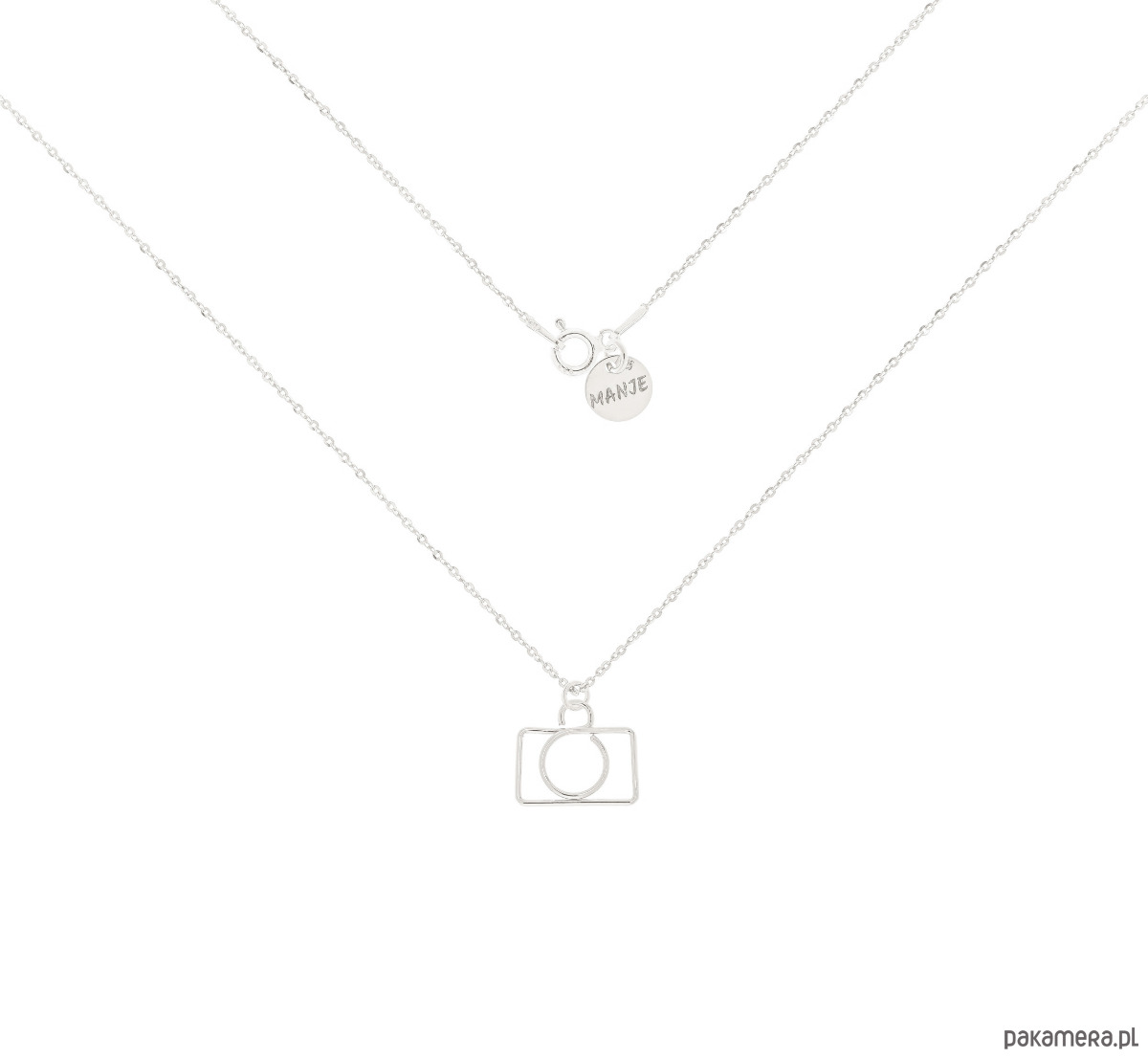 Srebrny naszyjnik z aparatem fotograficznym. Wykonany ze srebra próby 925.