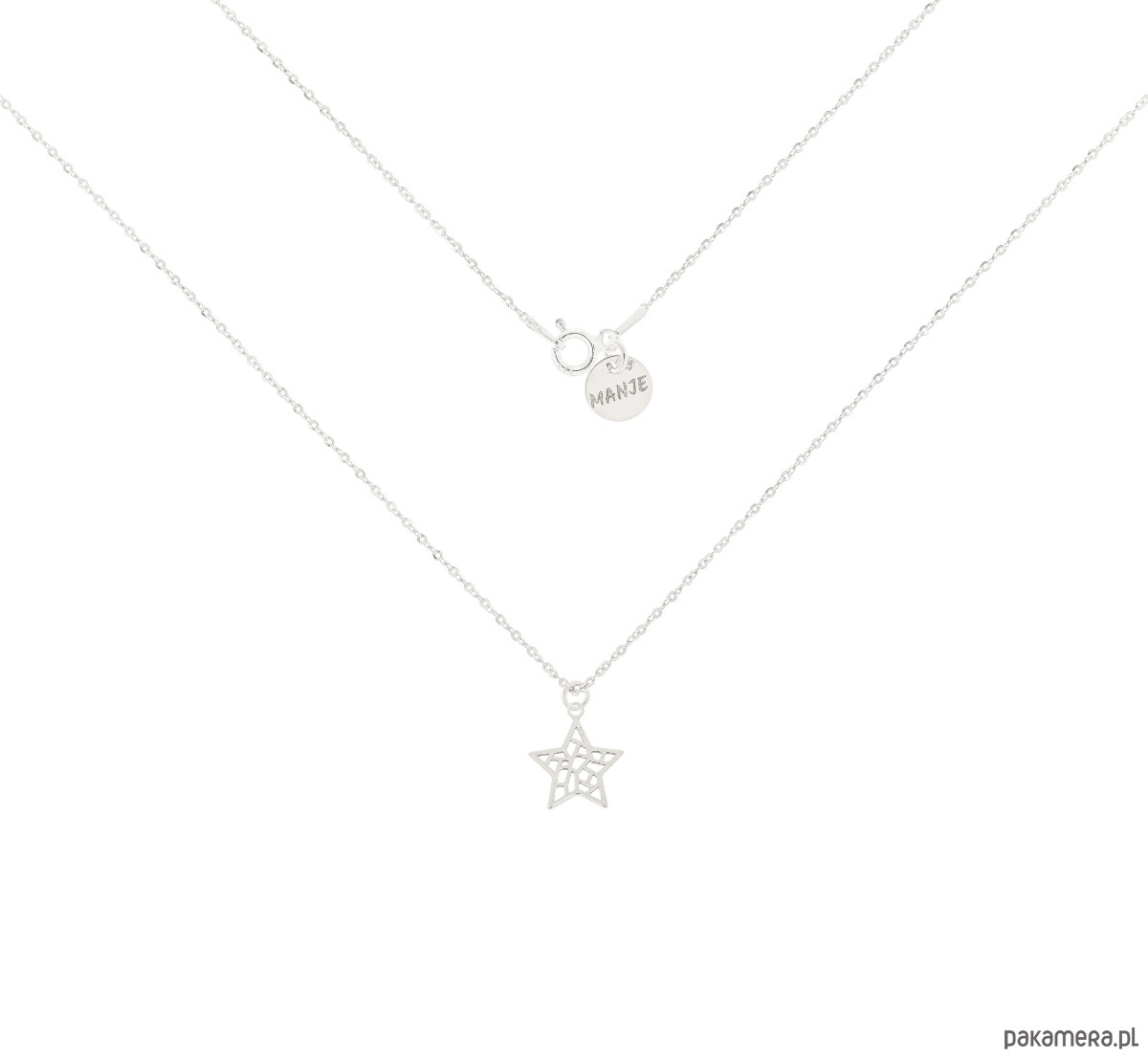 Srebrny naszyjnik z ażurową gwiazdką. Wykonany ze srebra próby 925.