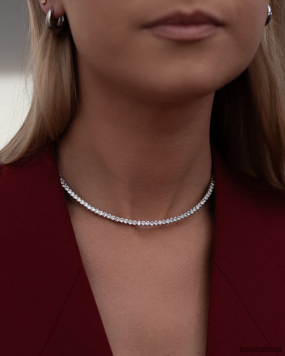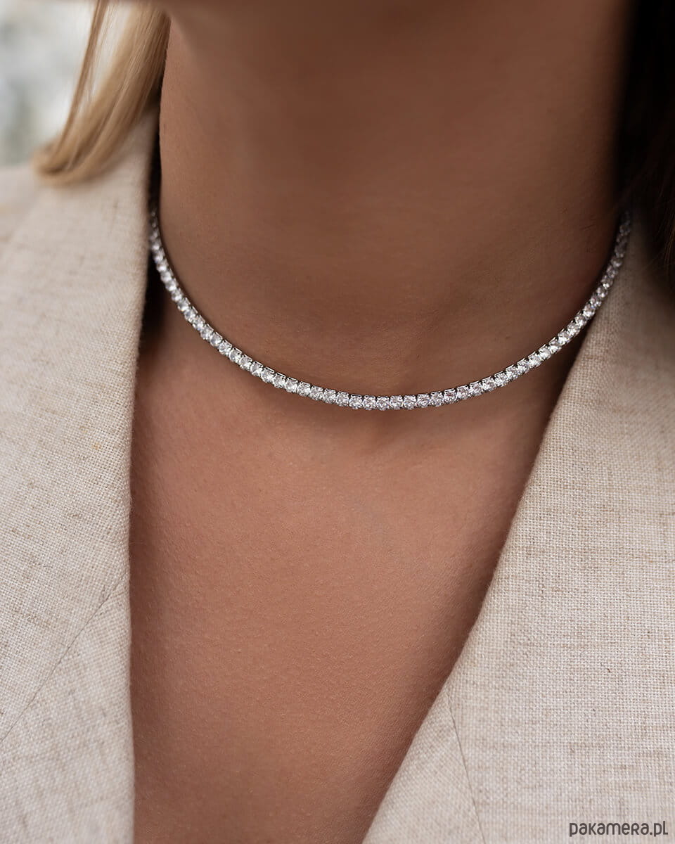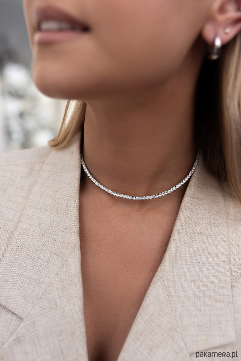Elegancki naszyjnik z drobnych, lśniących cyrkonii to doskonały wybór dla kobiet, które szukają błyszczącej biżuterii na wyjątkowe okazje. Wykonany z wodoodpornej i hipoalergicznej stali szlachetnej premium, zachowuje swój blask mimo kontaktu z wodą i nie powoduje podrażnień skóry. To idealna propozycja dla osób, które zastanawiają się, jaka biżuteria nie uczula i nie ciemnieje - oraz świetny pomysł na prezent dla kobiety ceniącej elegancję i komfort.Wymiary: średnica wewnętrzna 11,2 cm i szerokości 2,7 mm.