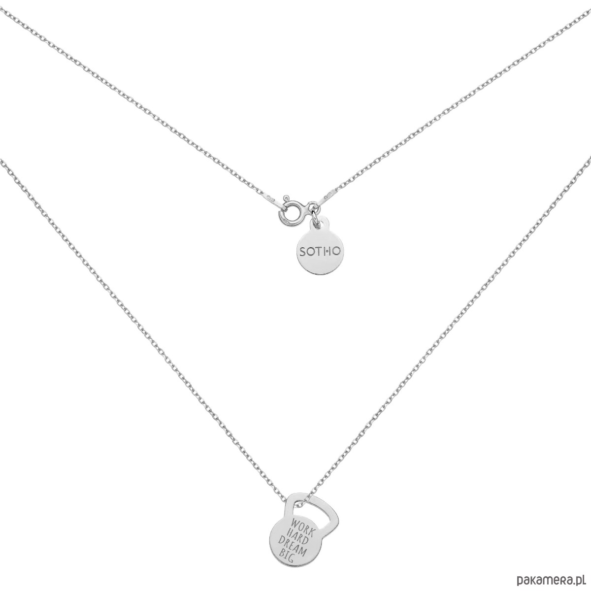 Srebrny naszyjnik z kettlebell WORK HARD DREAM BIG