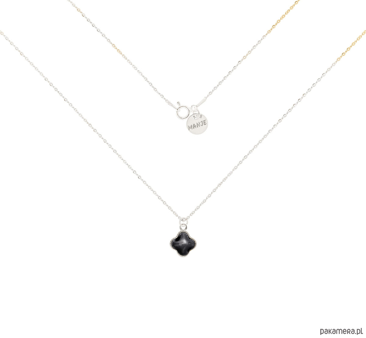 Srebrny naszyjnik z koniczyną z czarną emalią. Wykonany ze srebra próby 925.